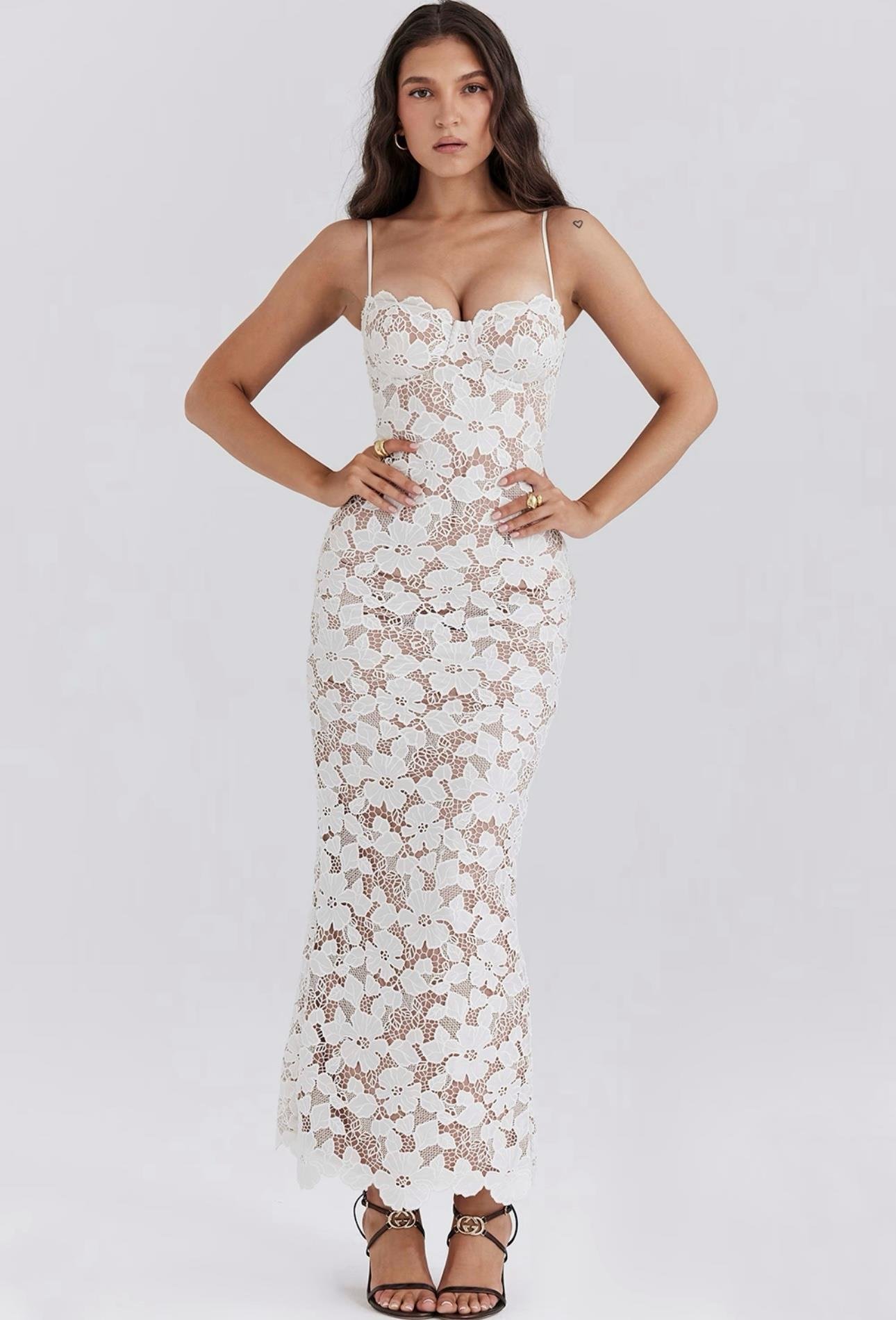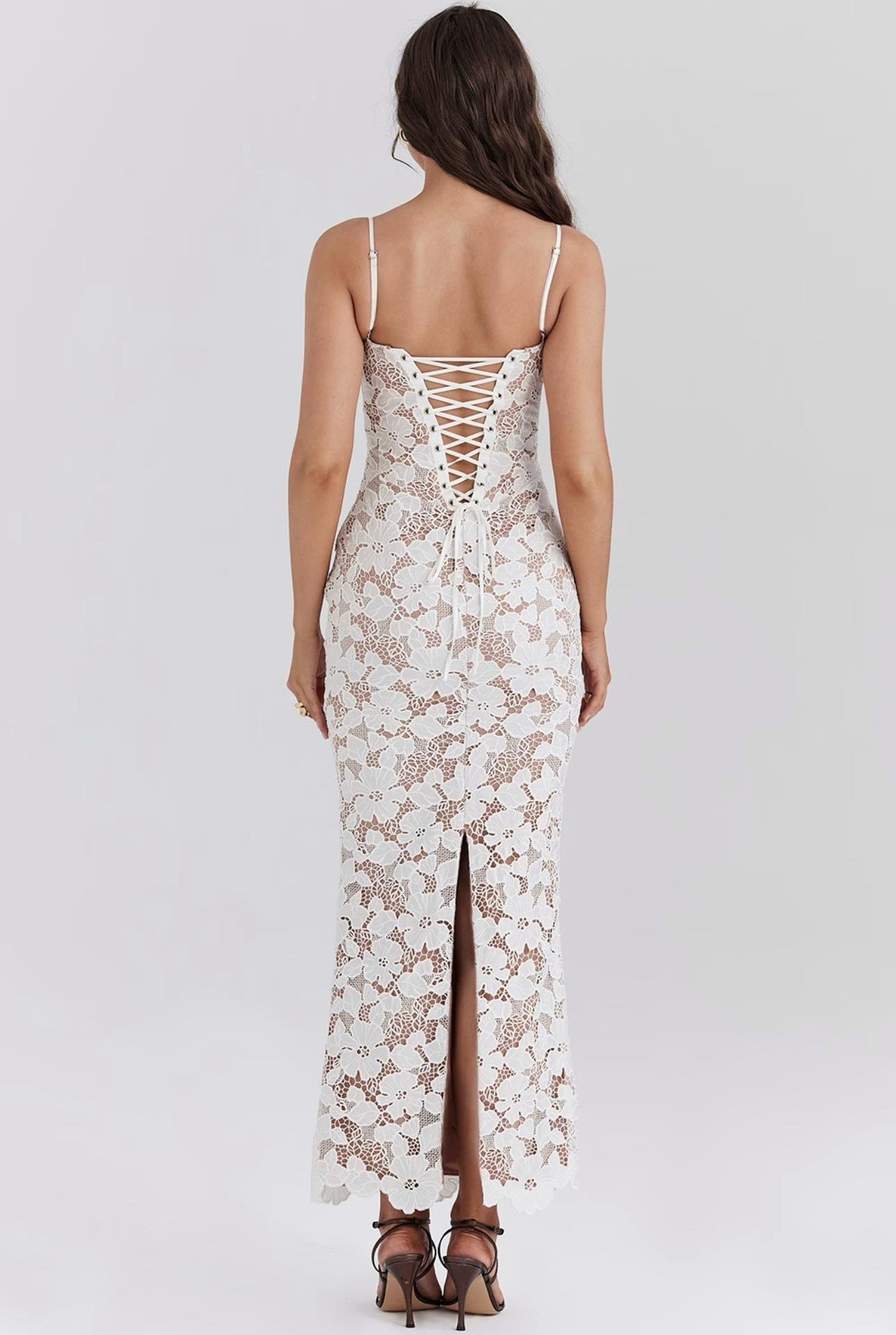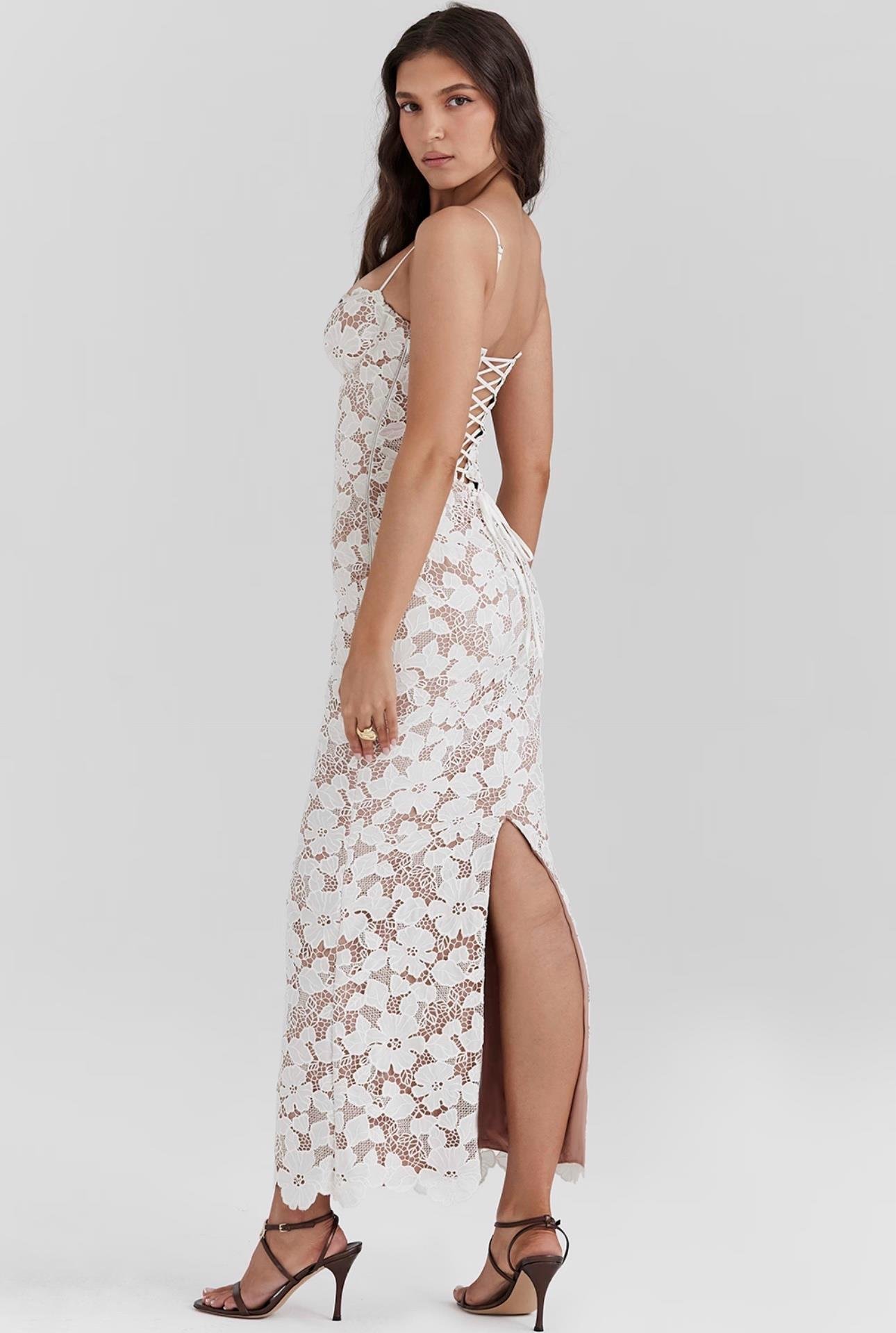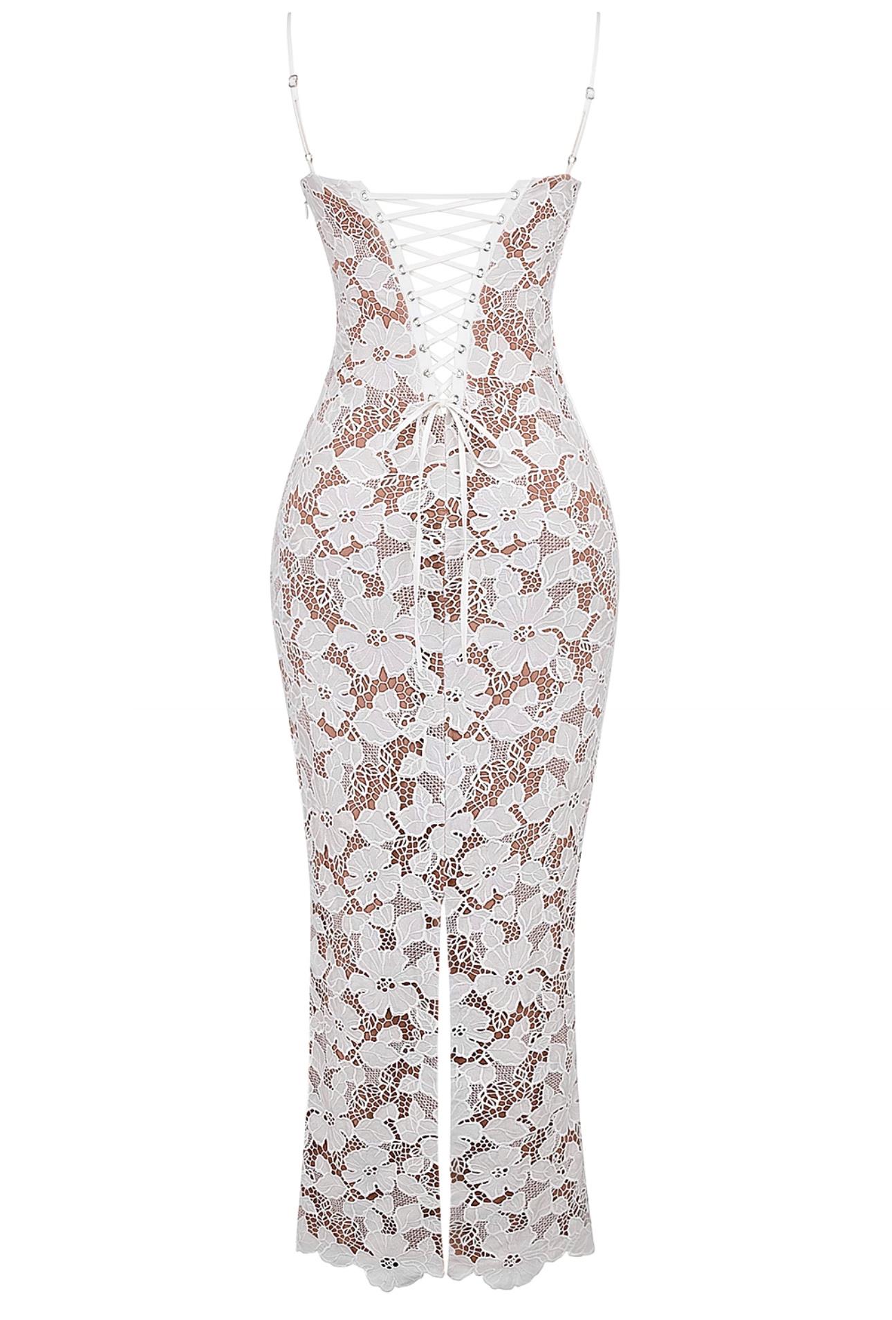 Askılı Beyaz Dantel Midi Tasarım Elbise (DA0002982)
