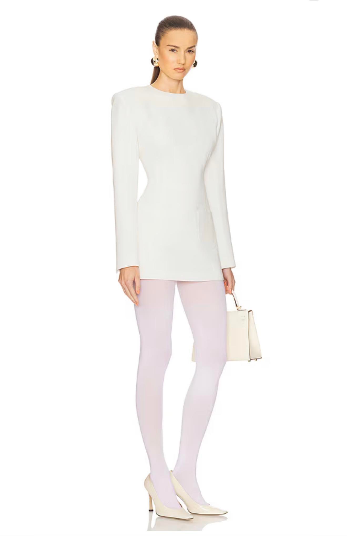 Beyaz Vatkalı Mini Tasarım Elbise (DA0002987)