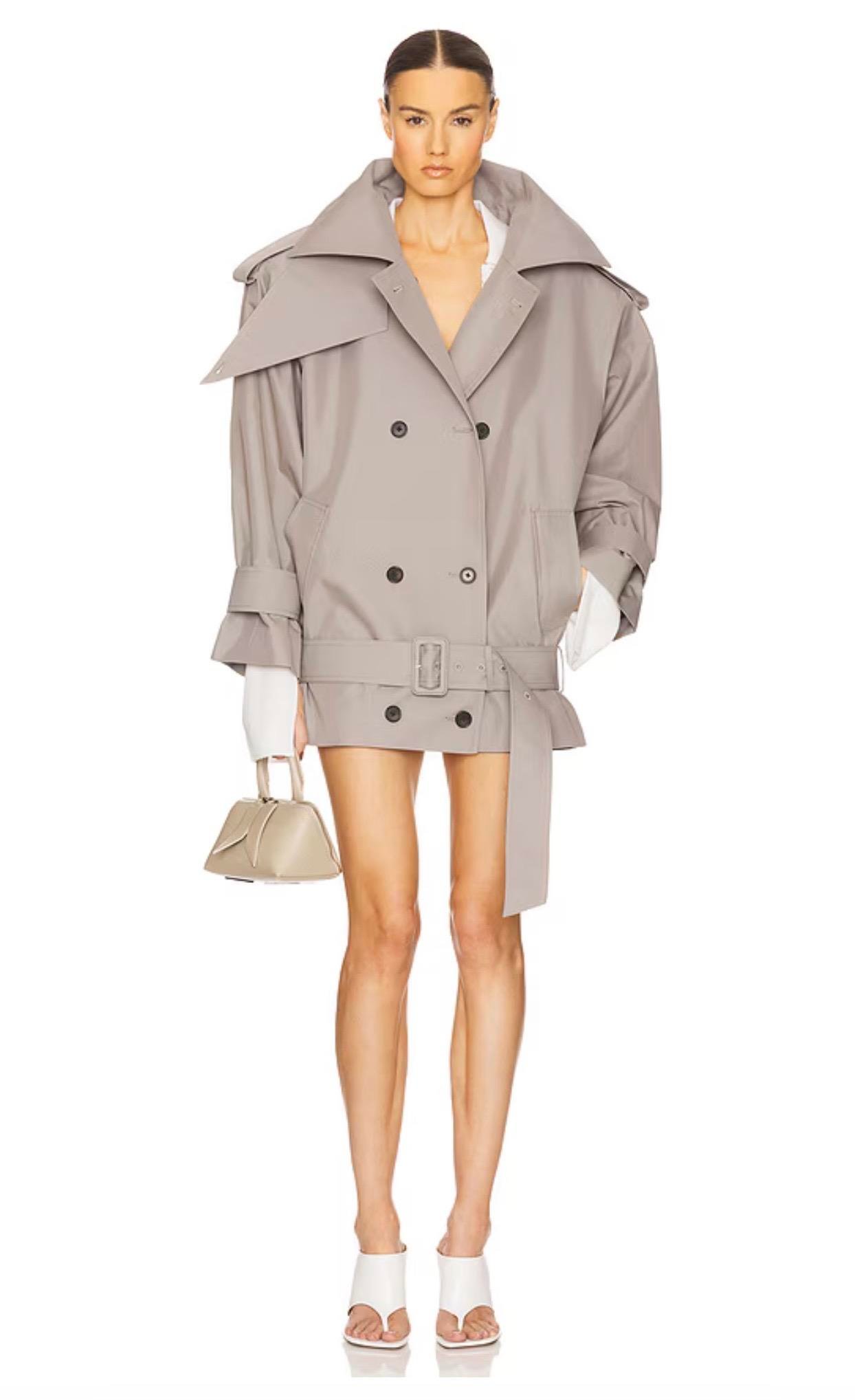 Boynu Fular Detaylı Kemerli Tasarım Trençkot (DA0002990)