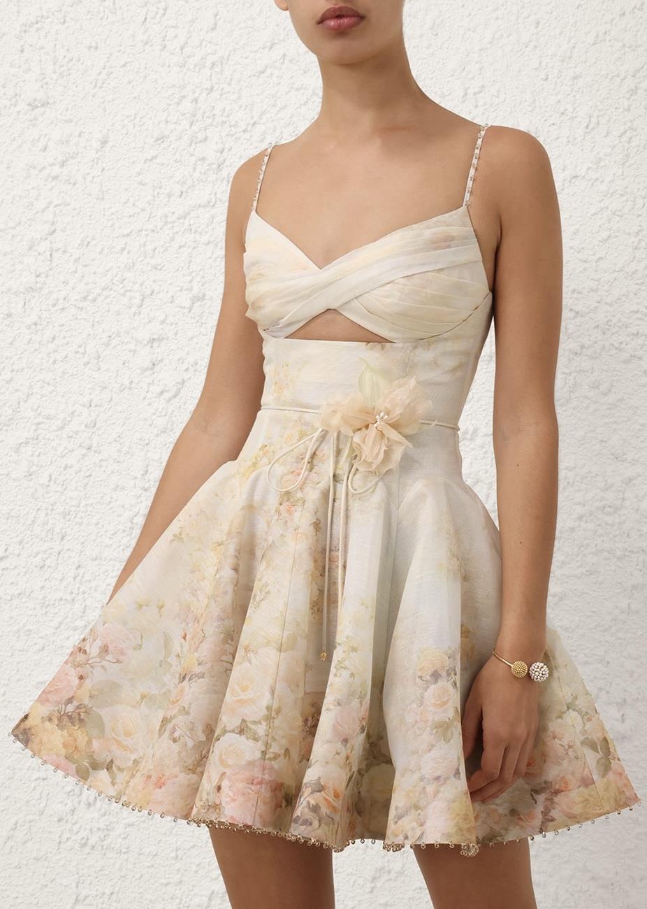 Çiçek Desenli Pencere Detaylı İpek Premium Mini Elbise (DA0002938)