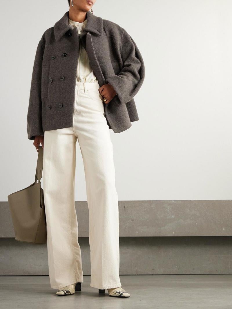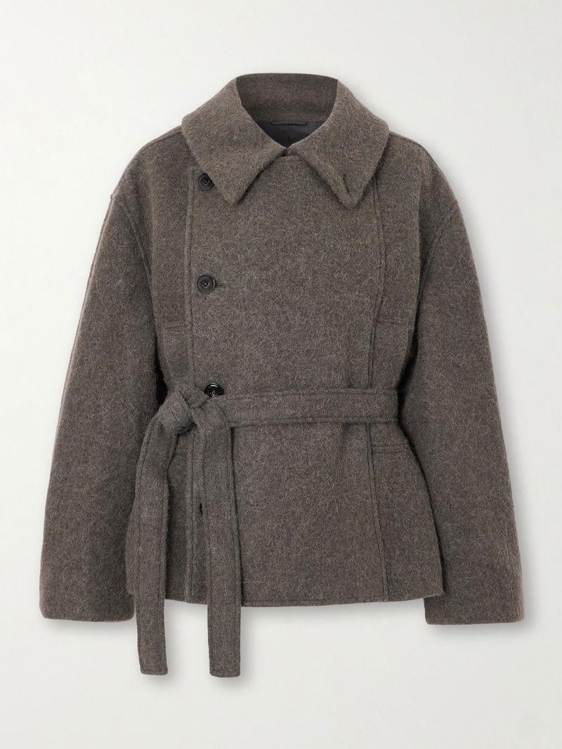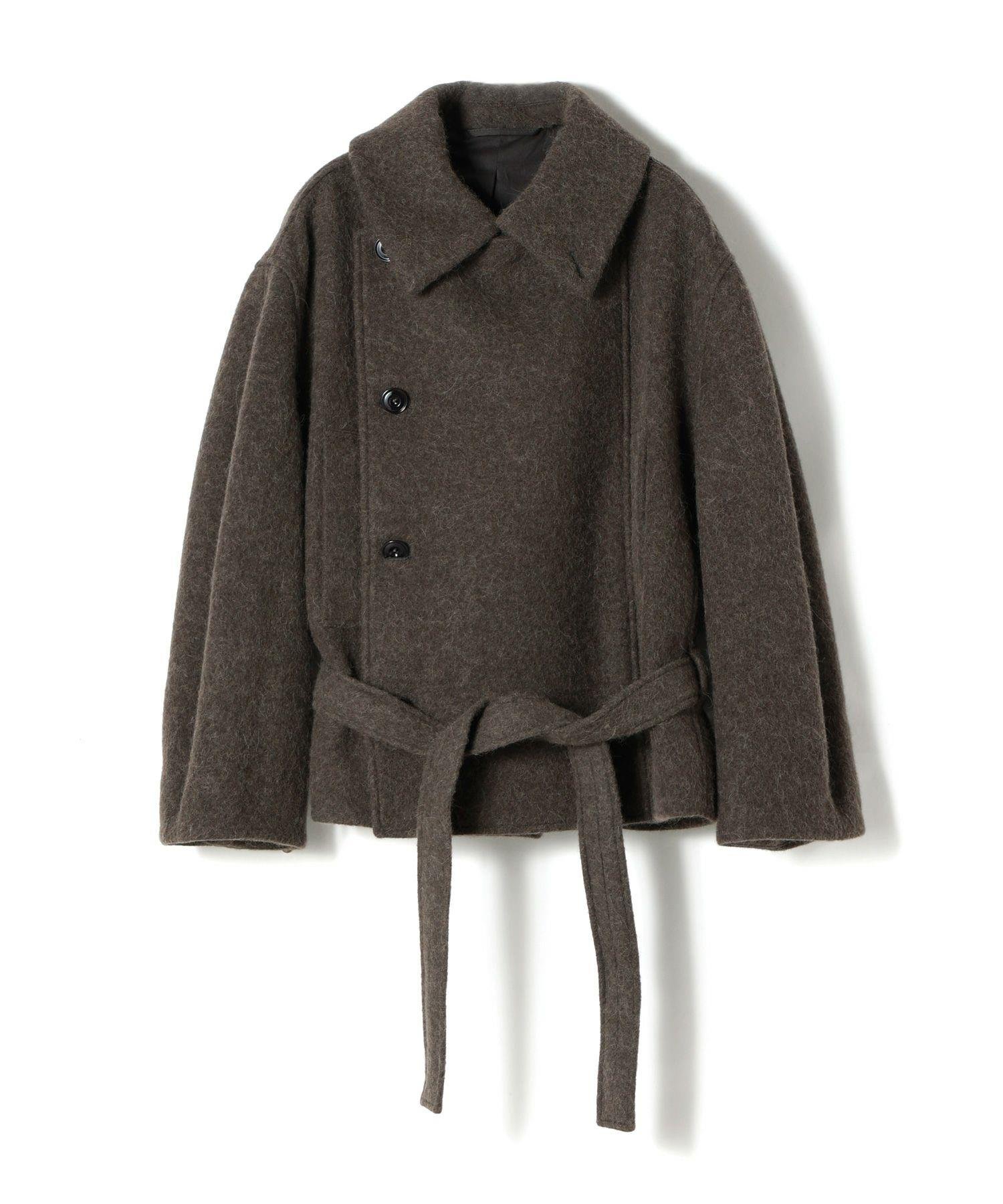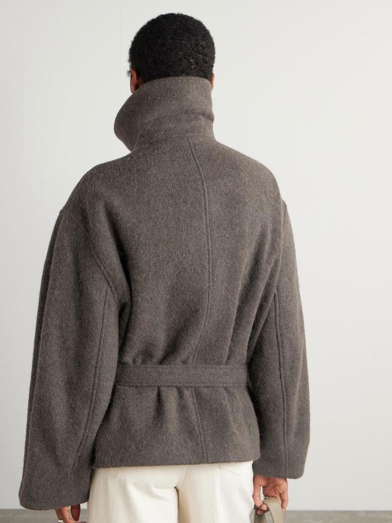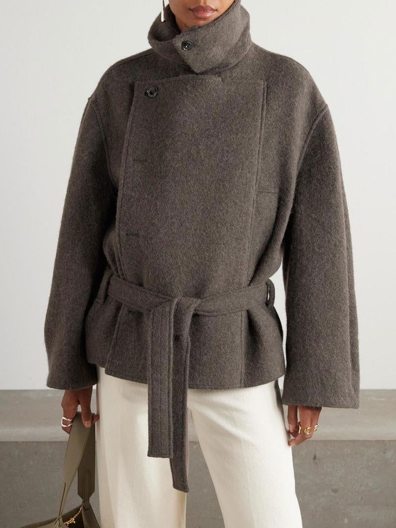 Çift Düğmeli Kemerli Antrasit Kaşe Crop Ceket (DA0003003)