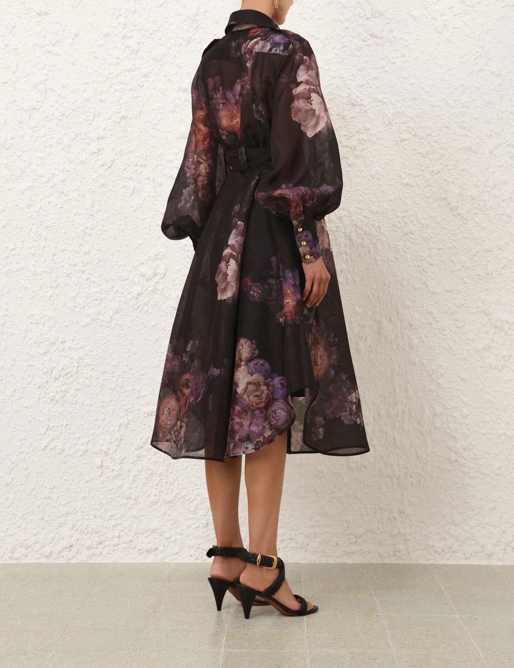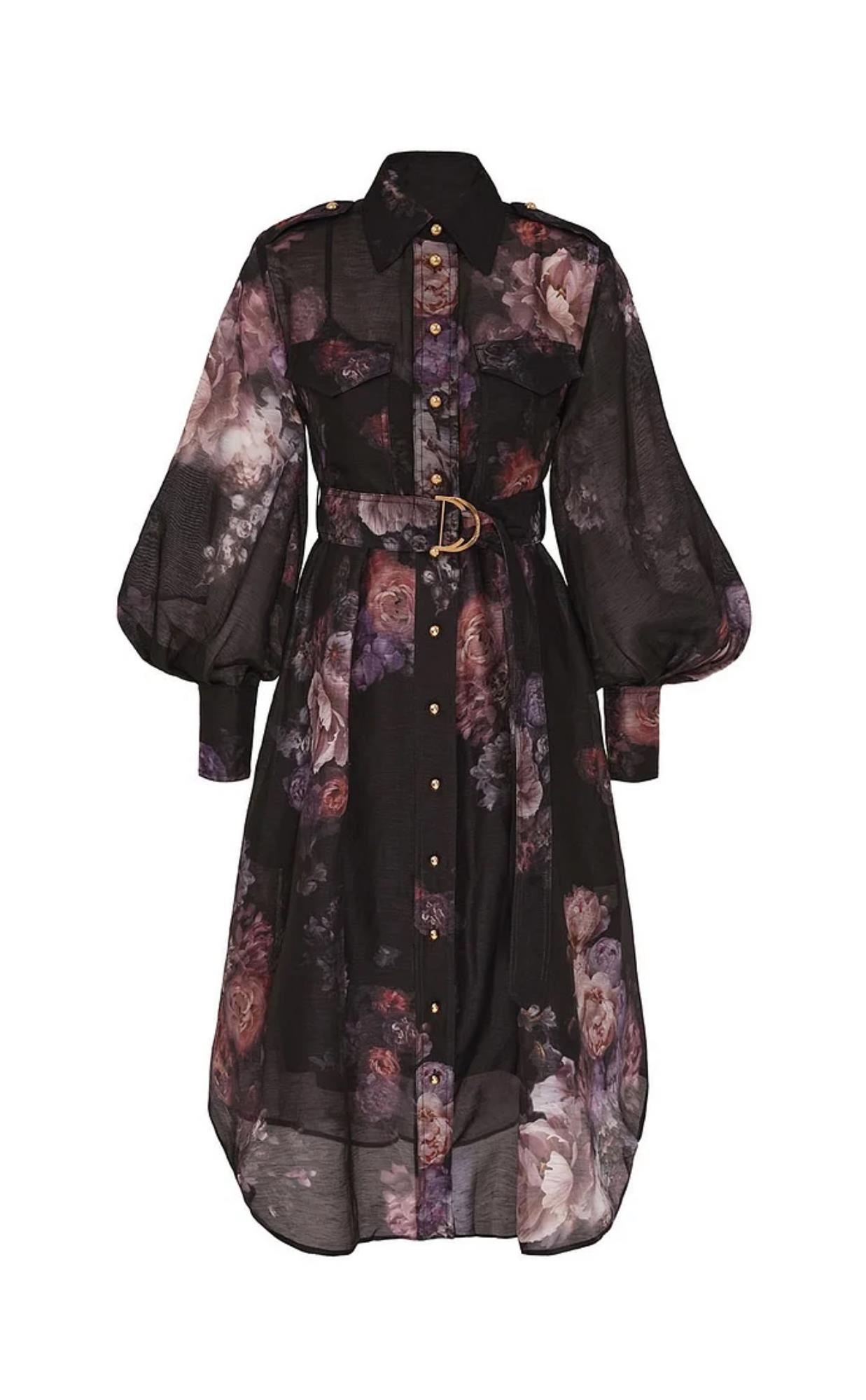 Desenli Kemerli Siyah Uzun Kollu Premium Midi Elbise (DA0002957)