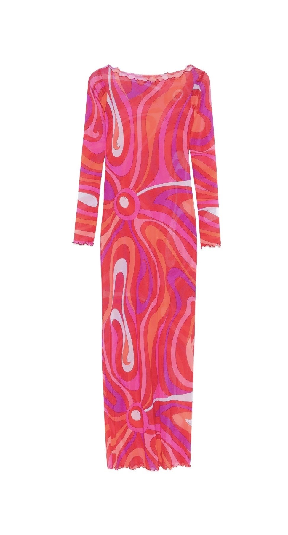 Desenli Transparan Fuşya Midi Boy Premium Maksi Elbise (DA0003346)