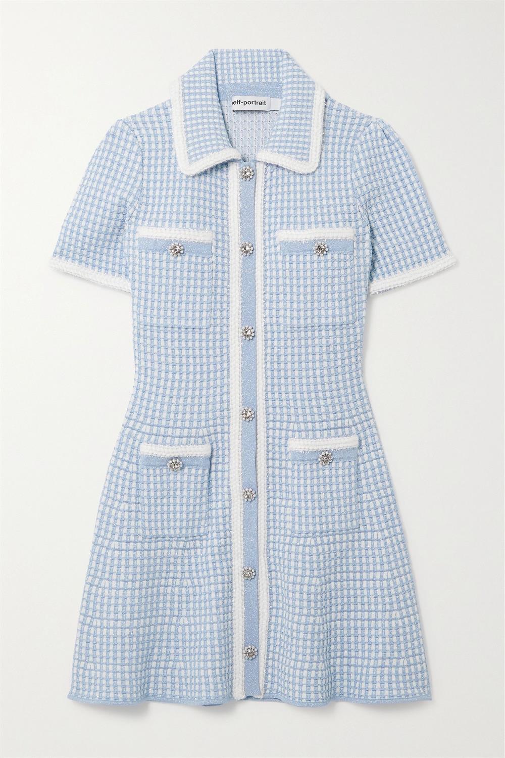 Düğme Detaylı Gömlek Yaka Mavi Triko Mini Tasarım Elbise (DA0003020)