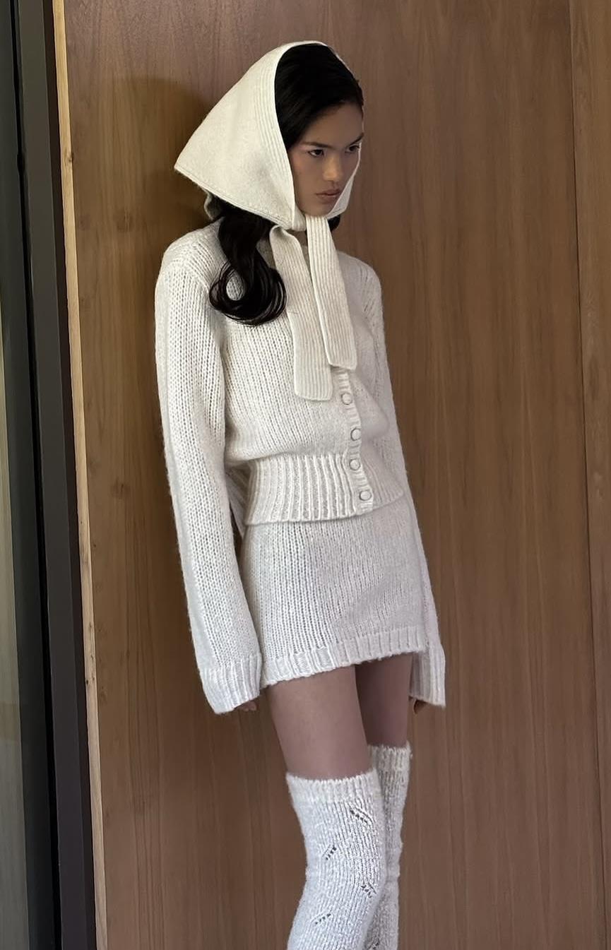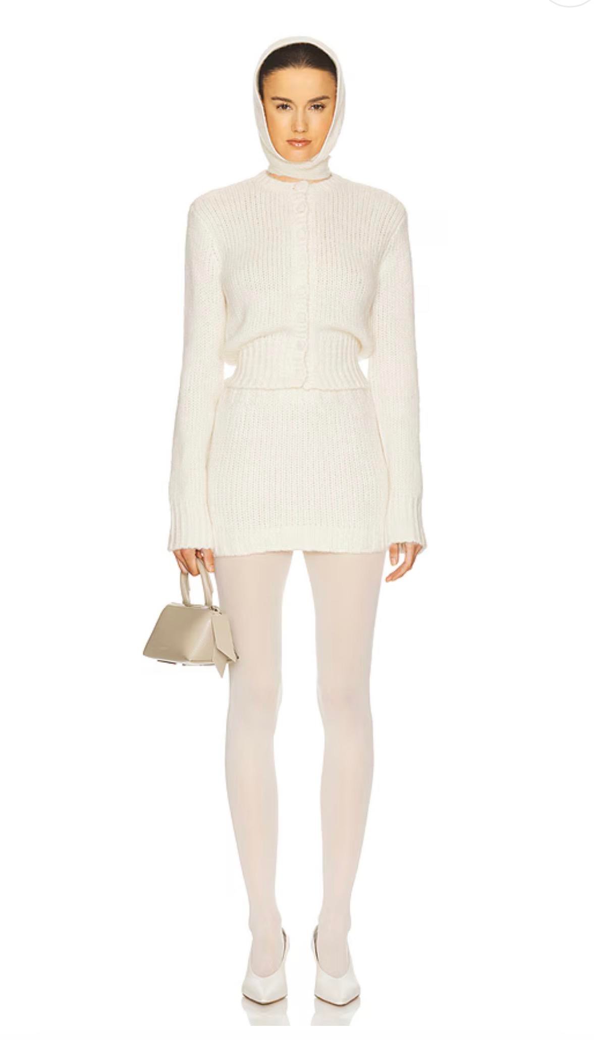 Düğmeli Premium Krem Hırka ve Etek Takım (DA0003040)