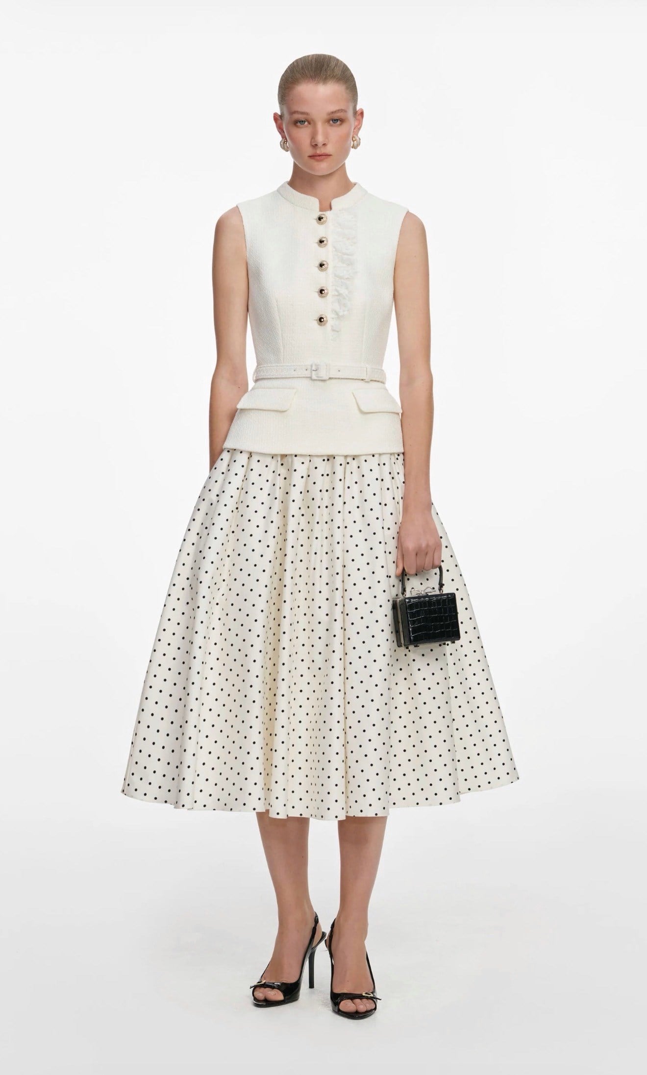 Eteği Puantiyeli Beyaz Kolsuz Midi Elbise (DA0003504)