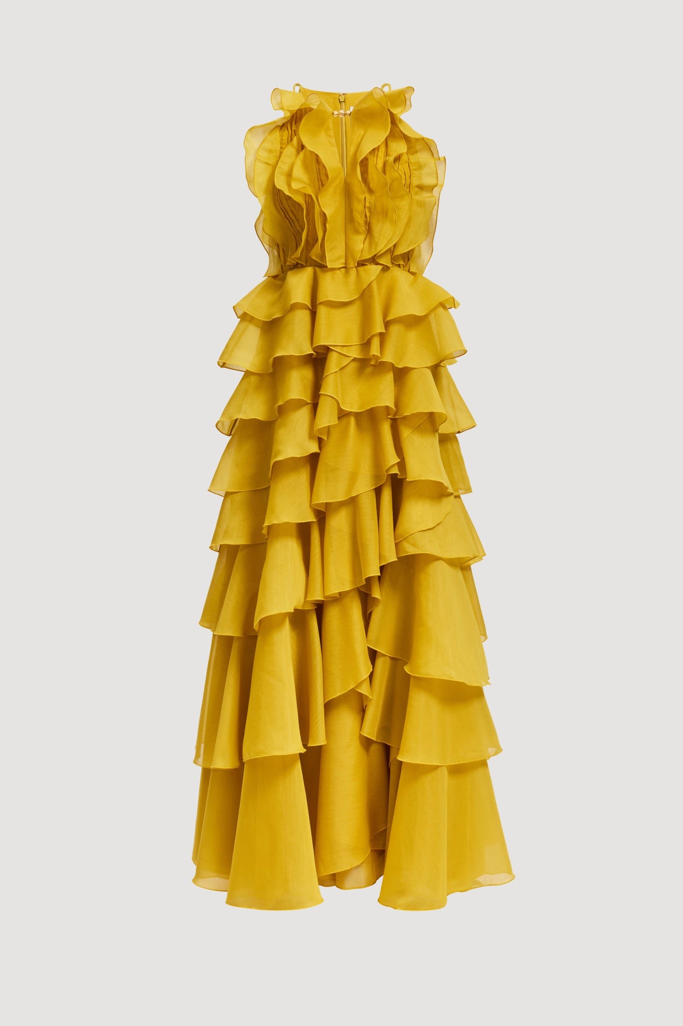 Fırfırlı Sarı Premium Maksi Elbise (DA0003354)
