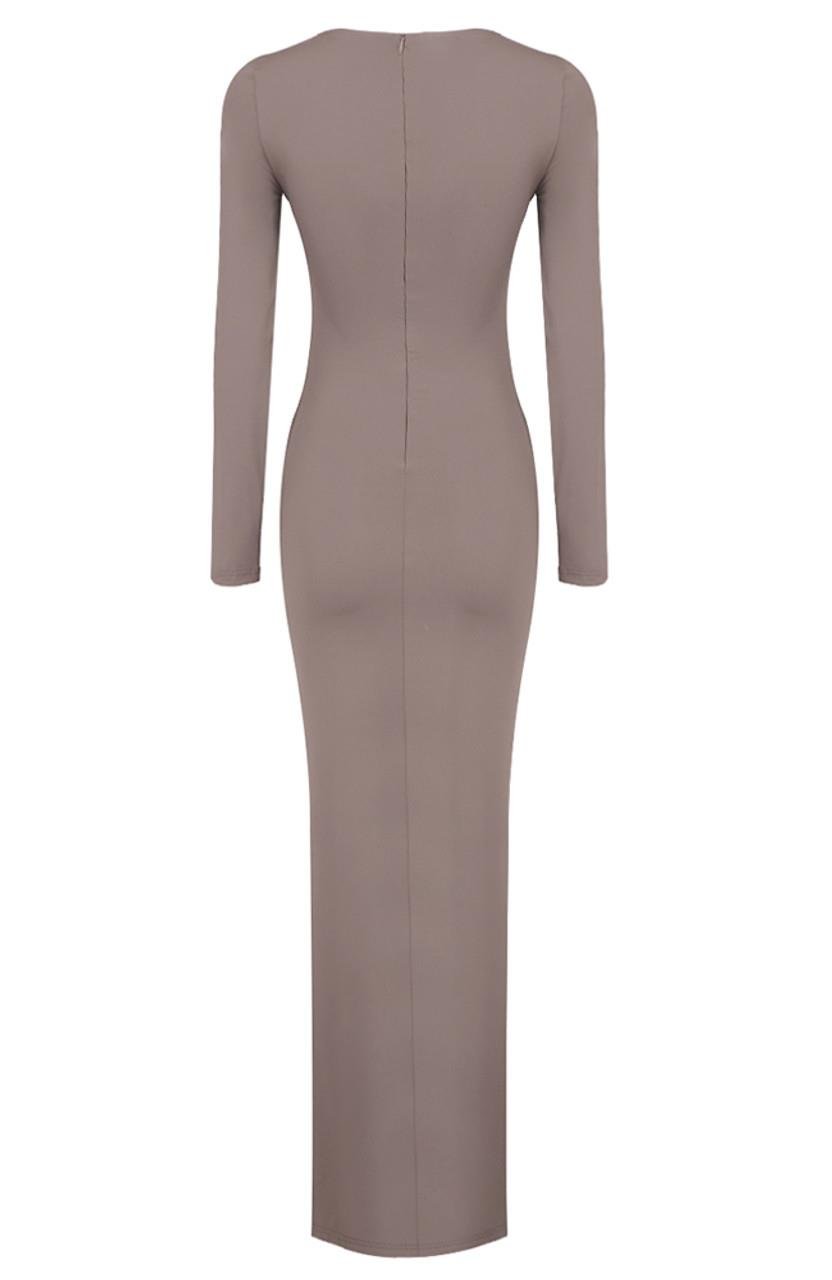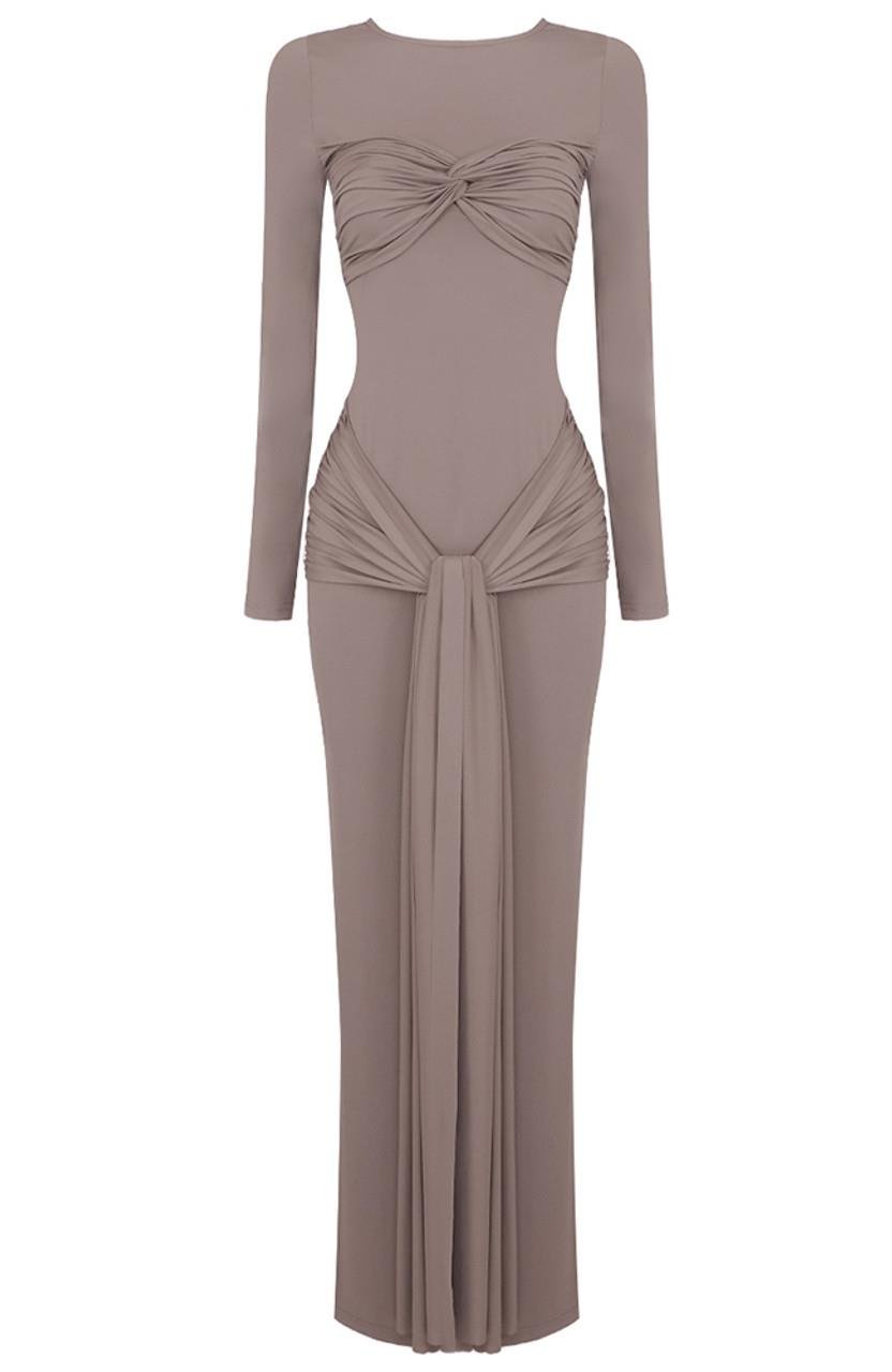 Göğsü Burgu Detaylı Önden Bağlamalı Trüf Rengi Tasarım Elbise (DA0002974)