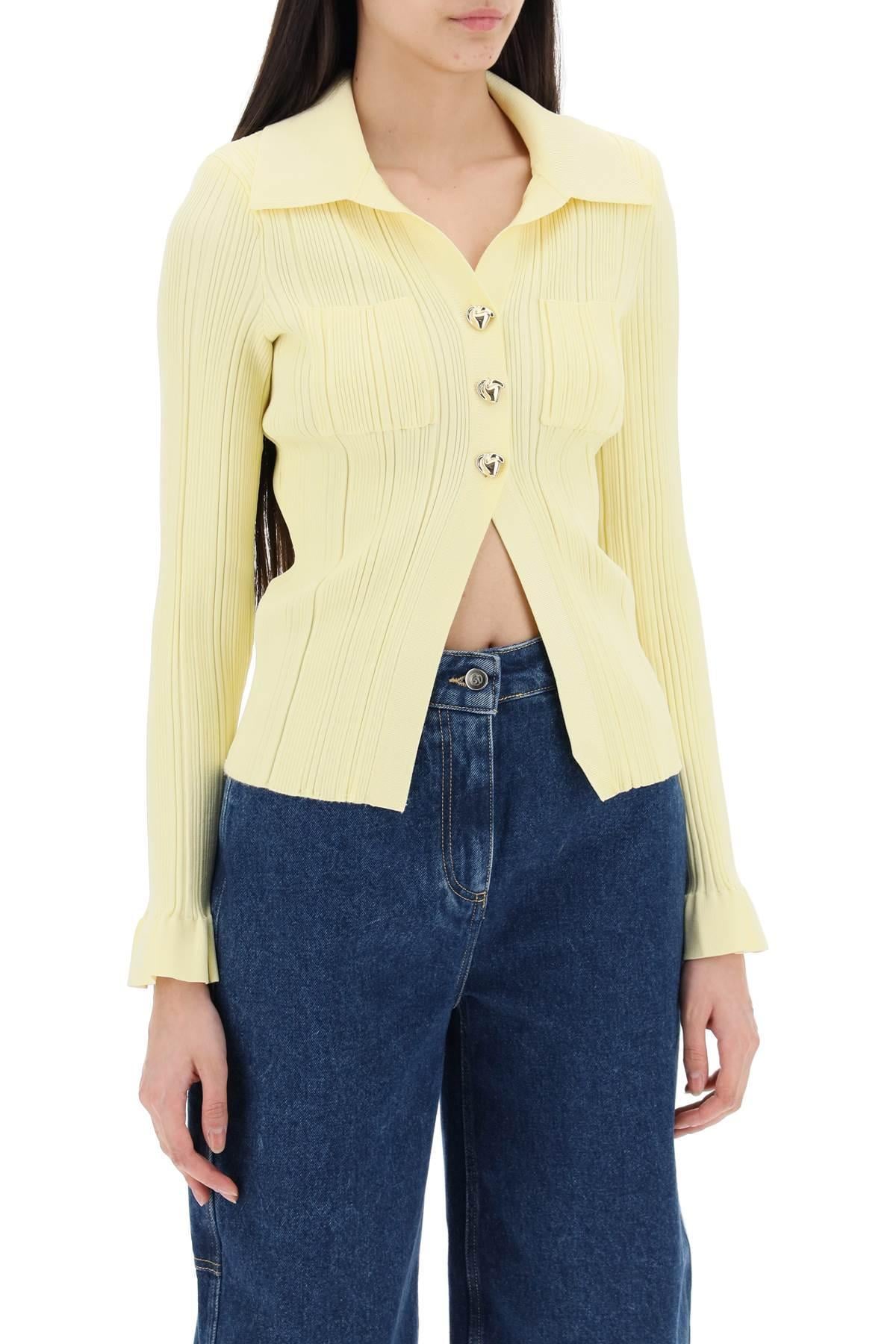 Gold Düğme Detaylı Fitilli Vatkalı Sarı Triko Bluz (DA0002950)