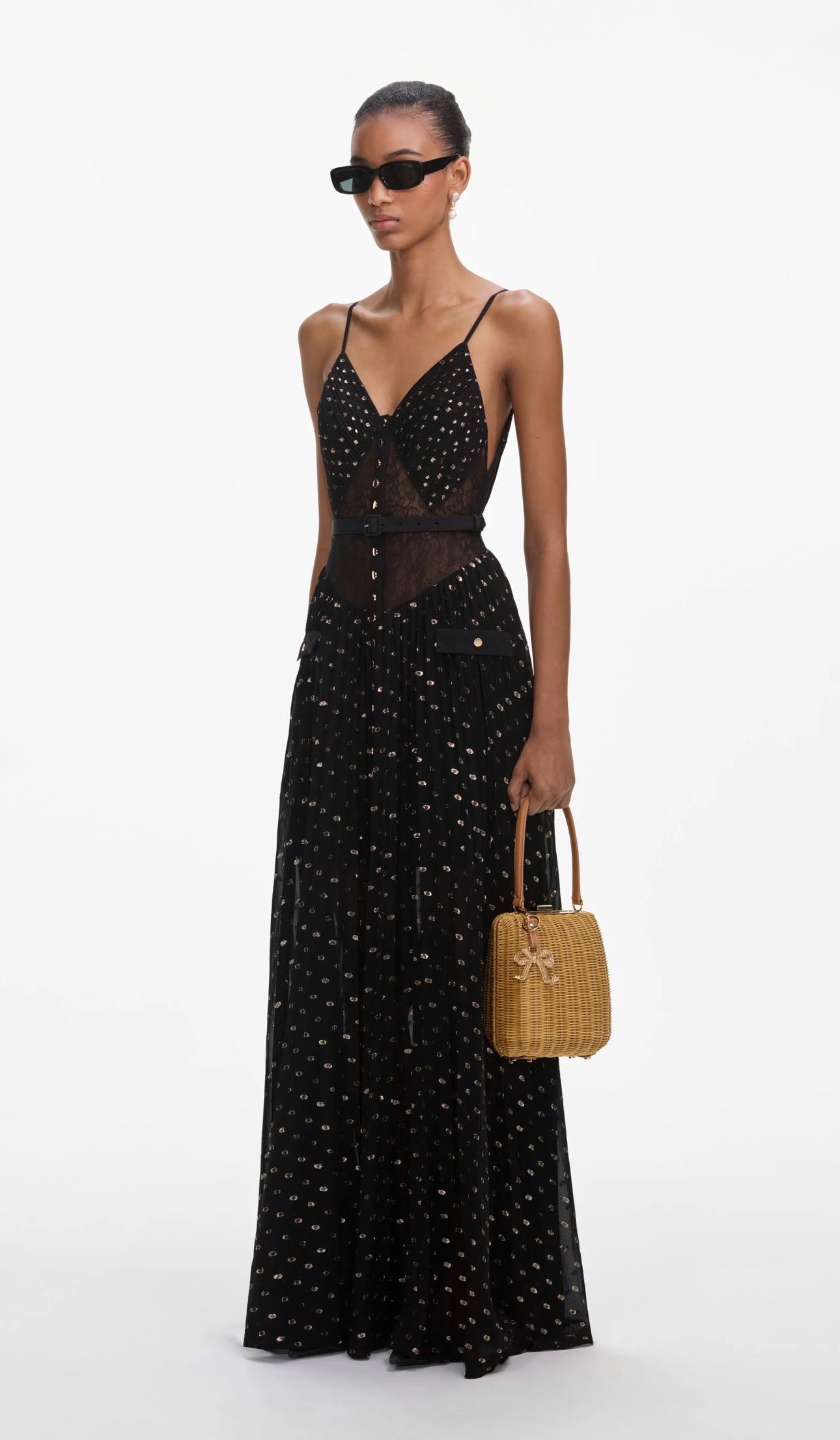 İp Askılı Düğmeli Kemerli Maksi Tasarım Elbise (DA0002894)