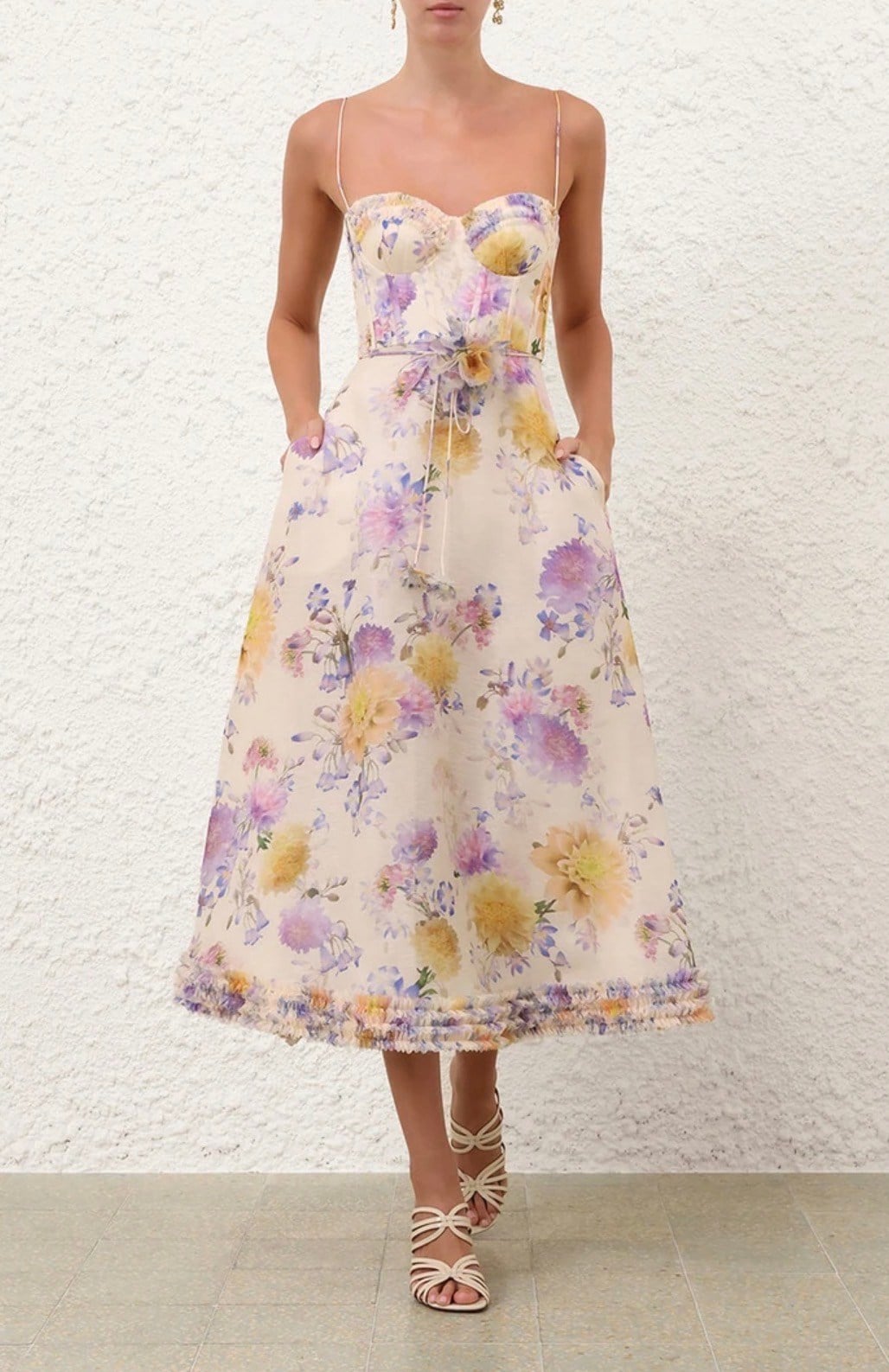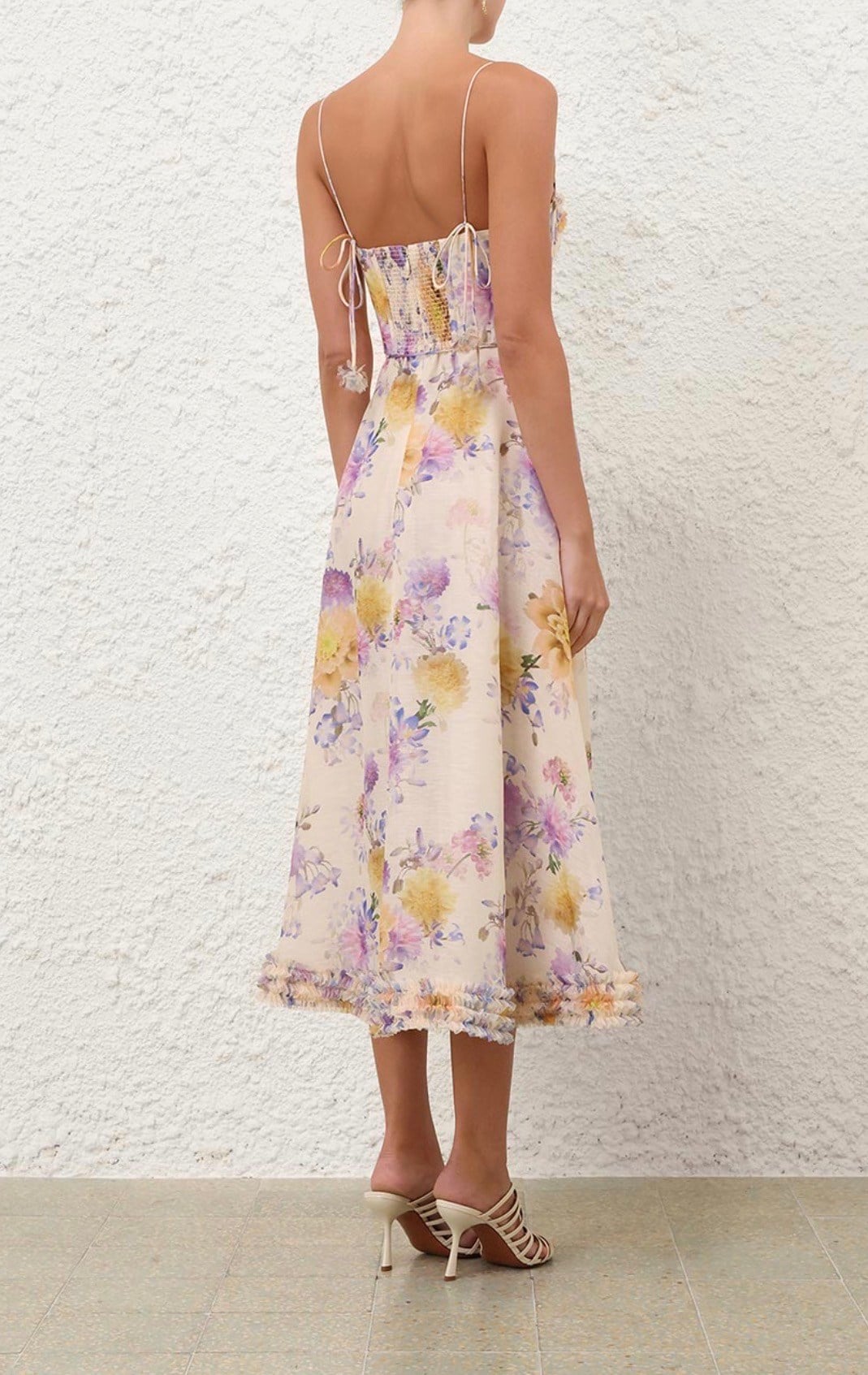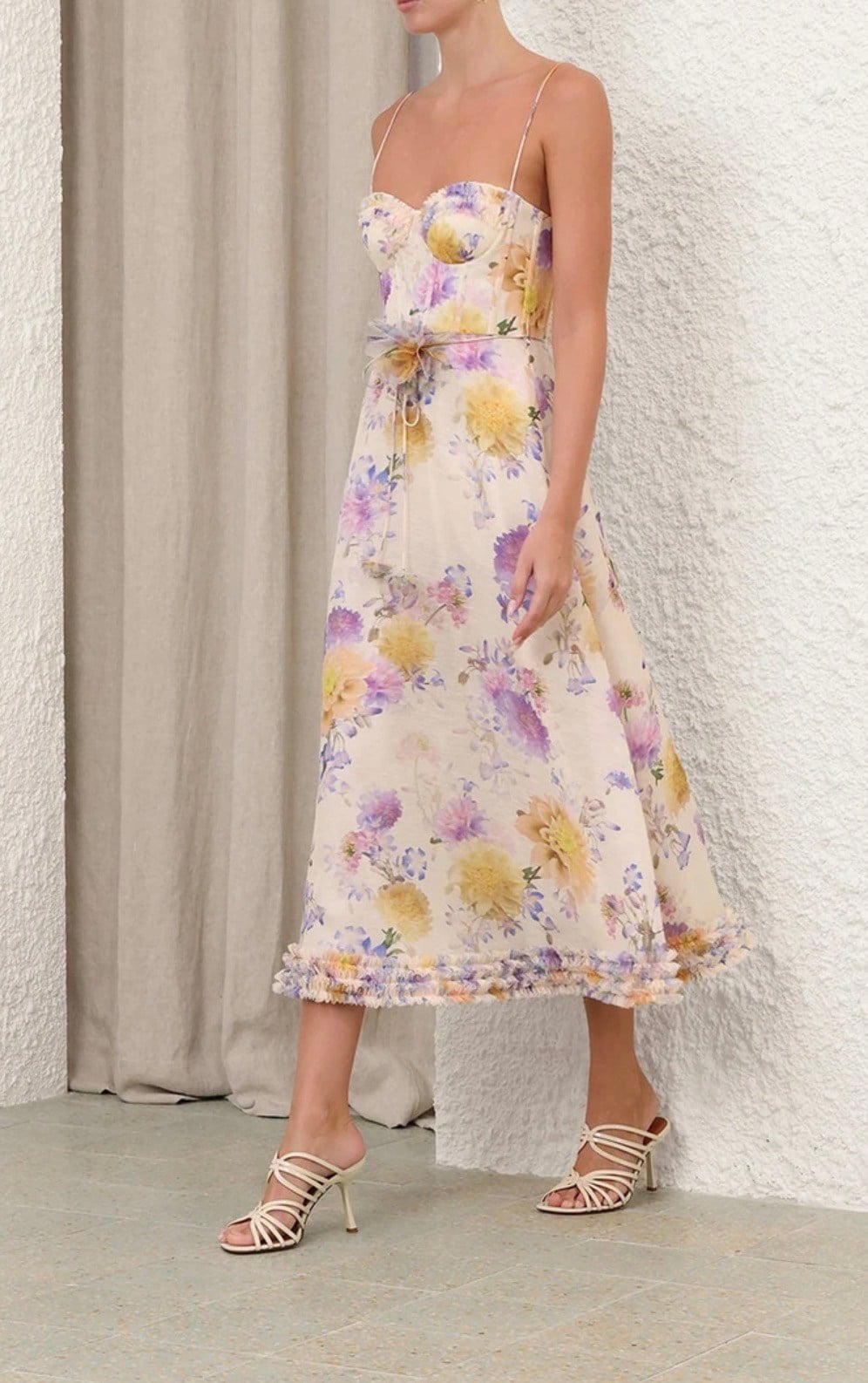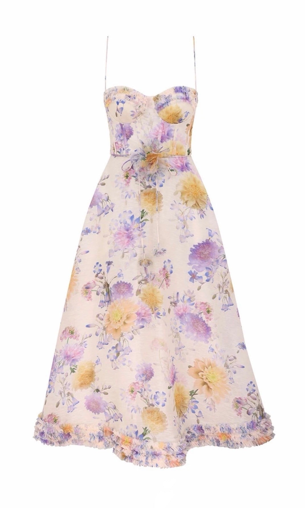 İpek İp Askılı Çiçek Desenli Midi Premium Elbise (DA0003548)