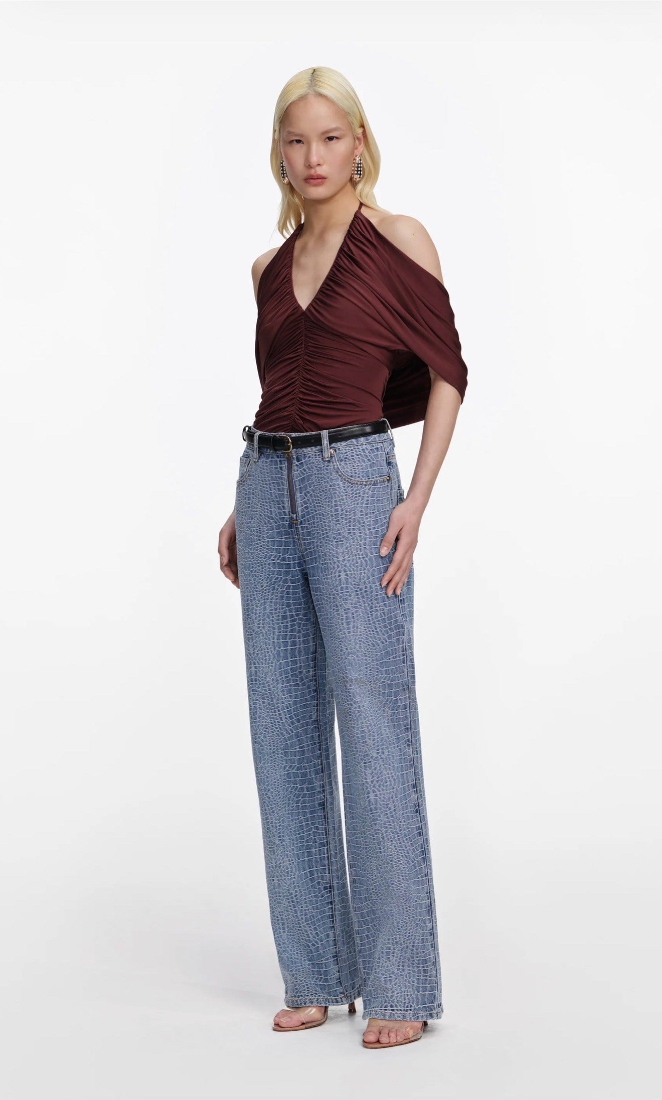 Kahverengi Kolları Dökümlü Premium Bluz (DA0003556)