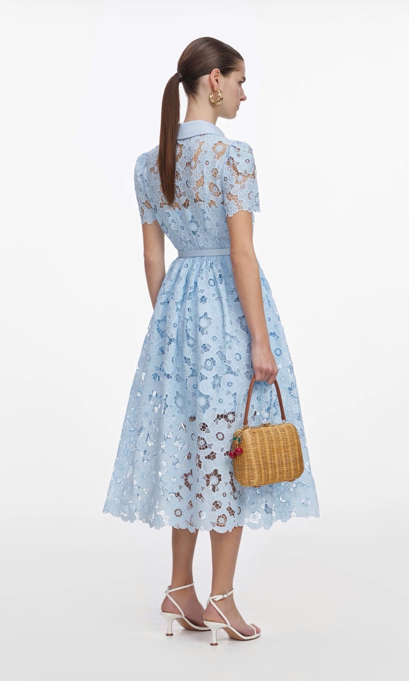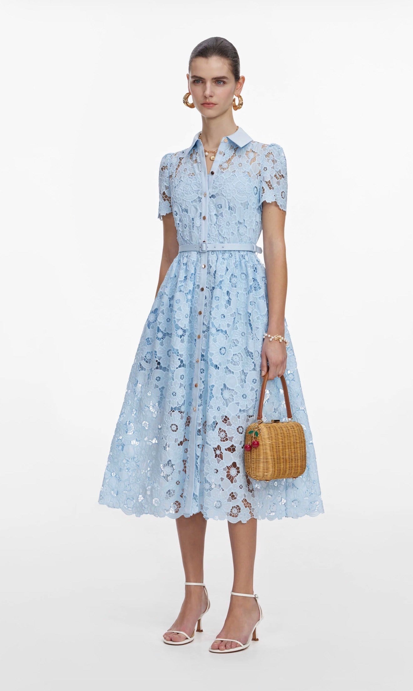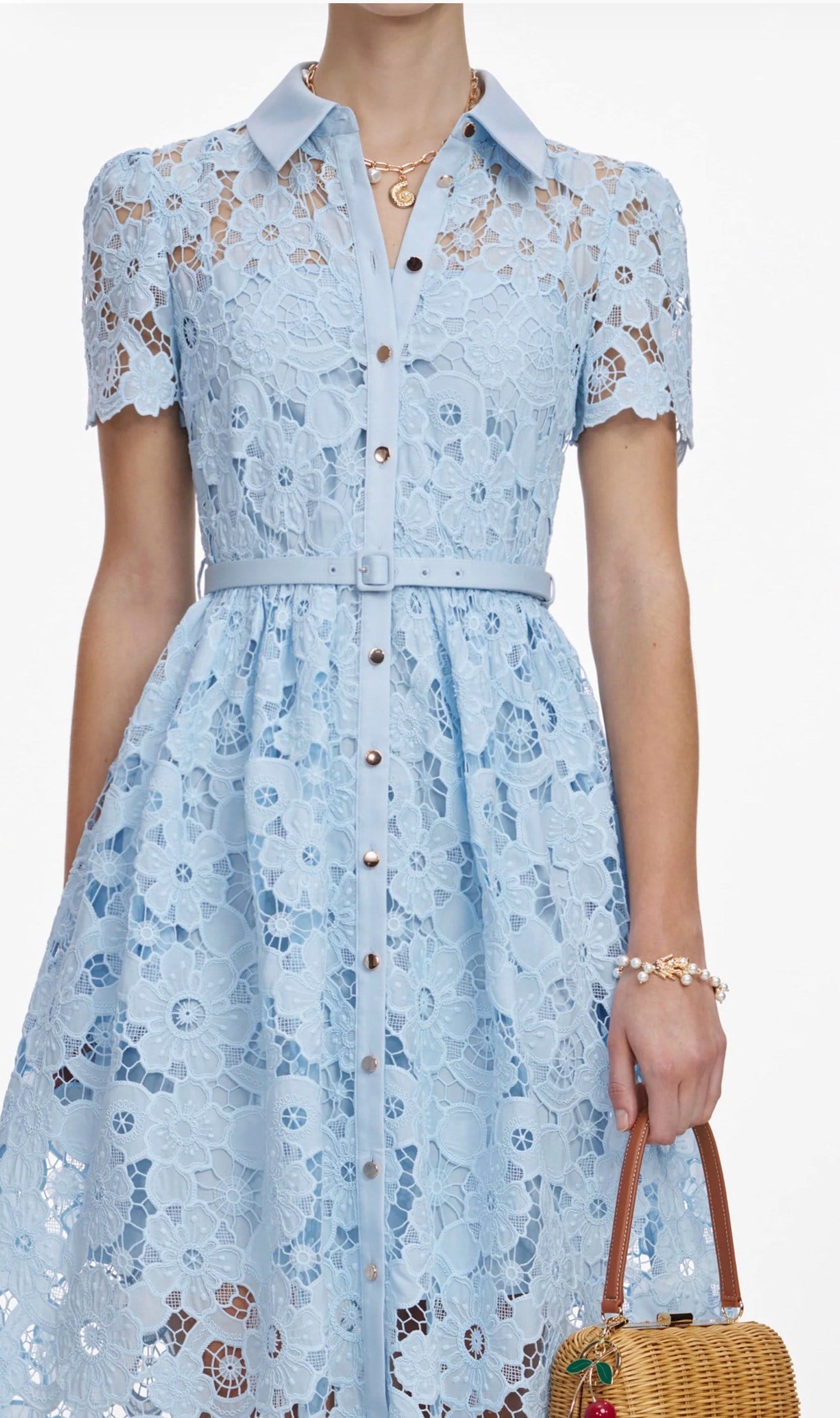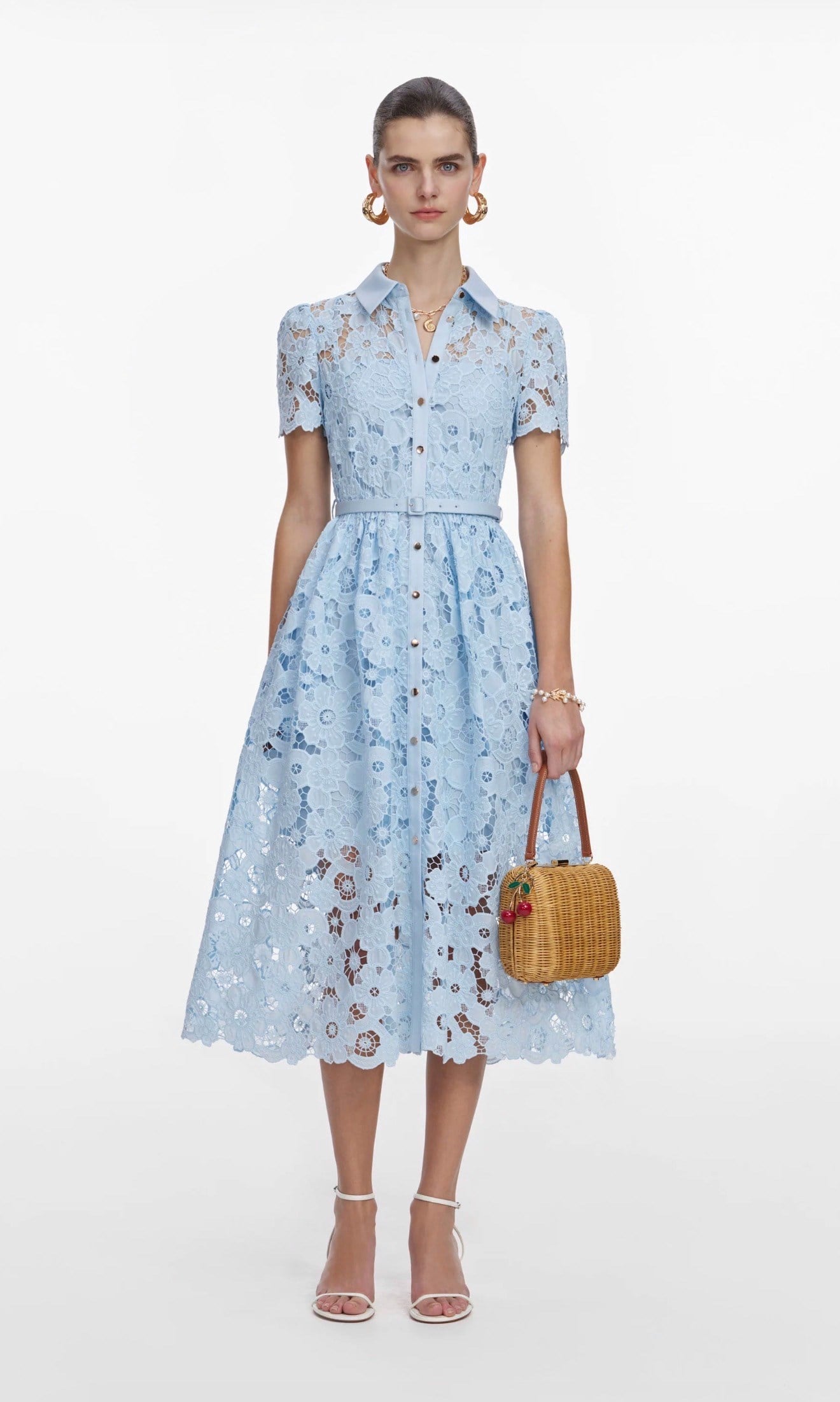 Kemerli Güpür Mavi Midi Elbise (DA0003339)