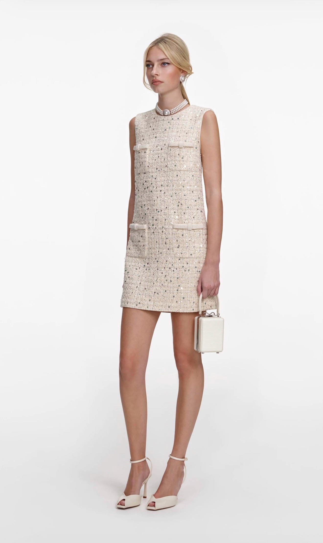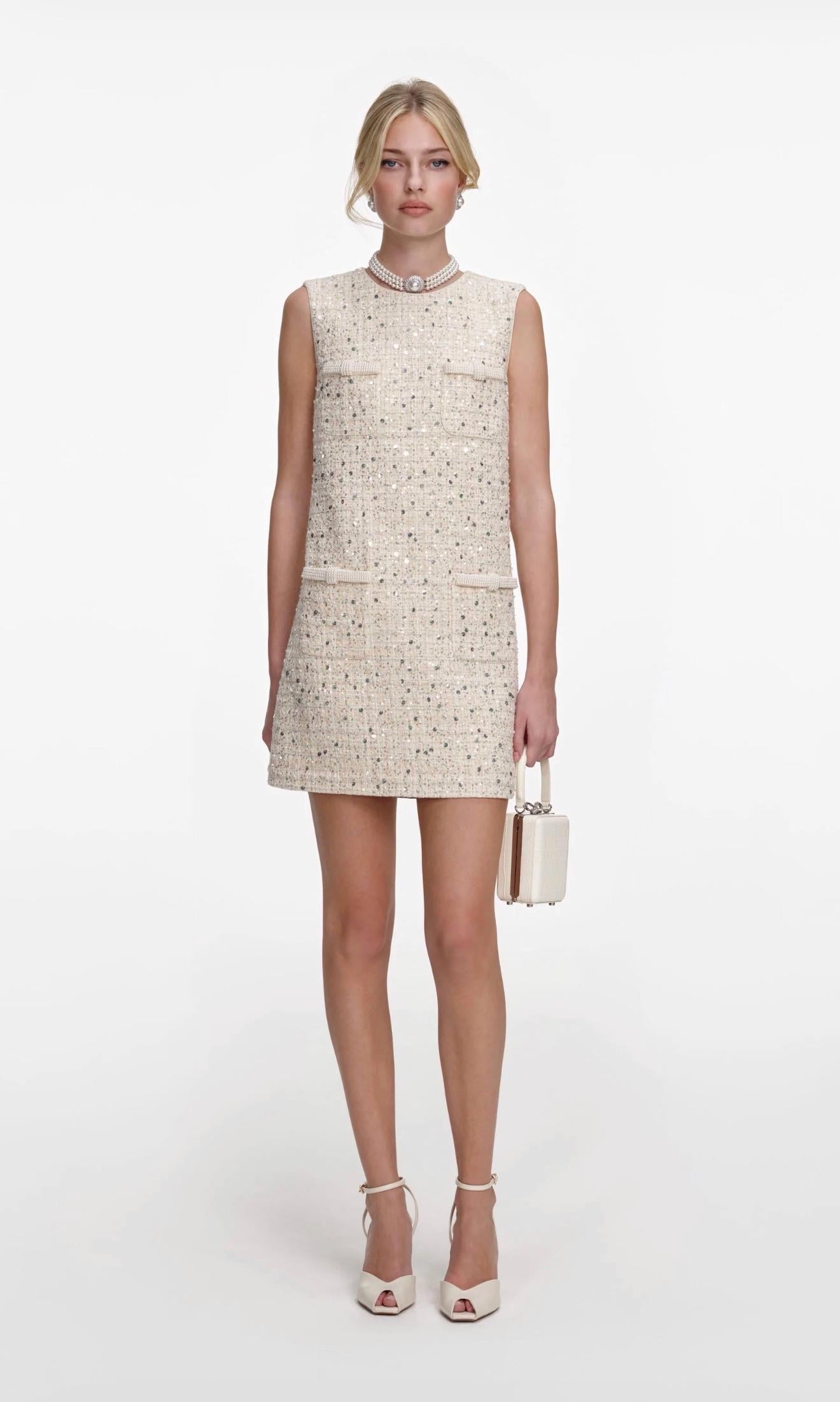Kendinden Simli Kolsuz İncili Mini Elbise (DA0003129)