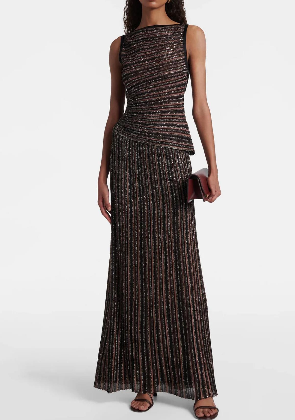 Kendinden Simli Kolsuz Premium Bluz ve Maksi Etek Takım (DA0002976)