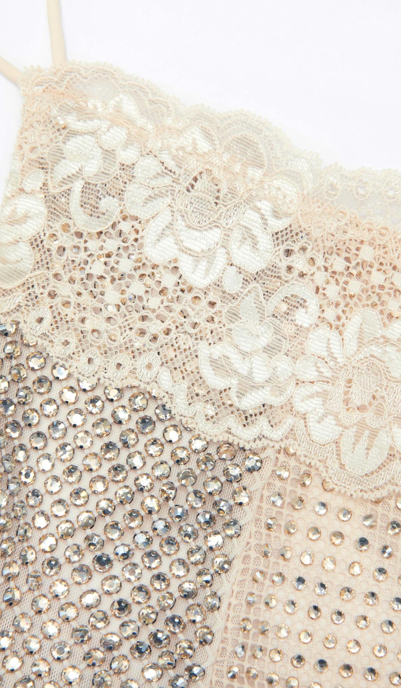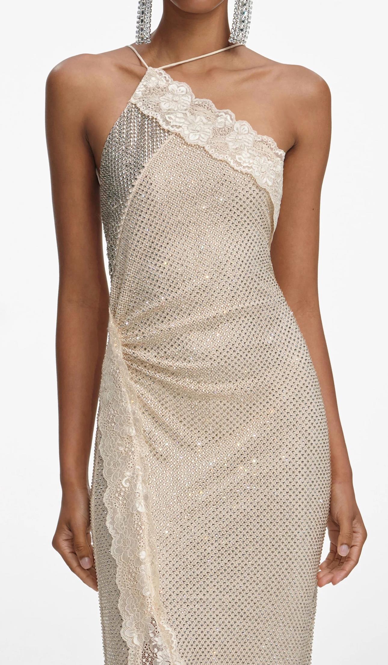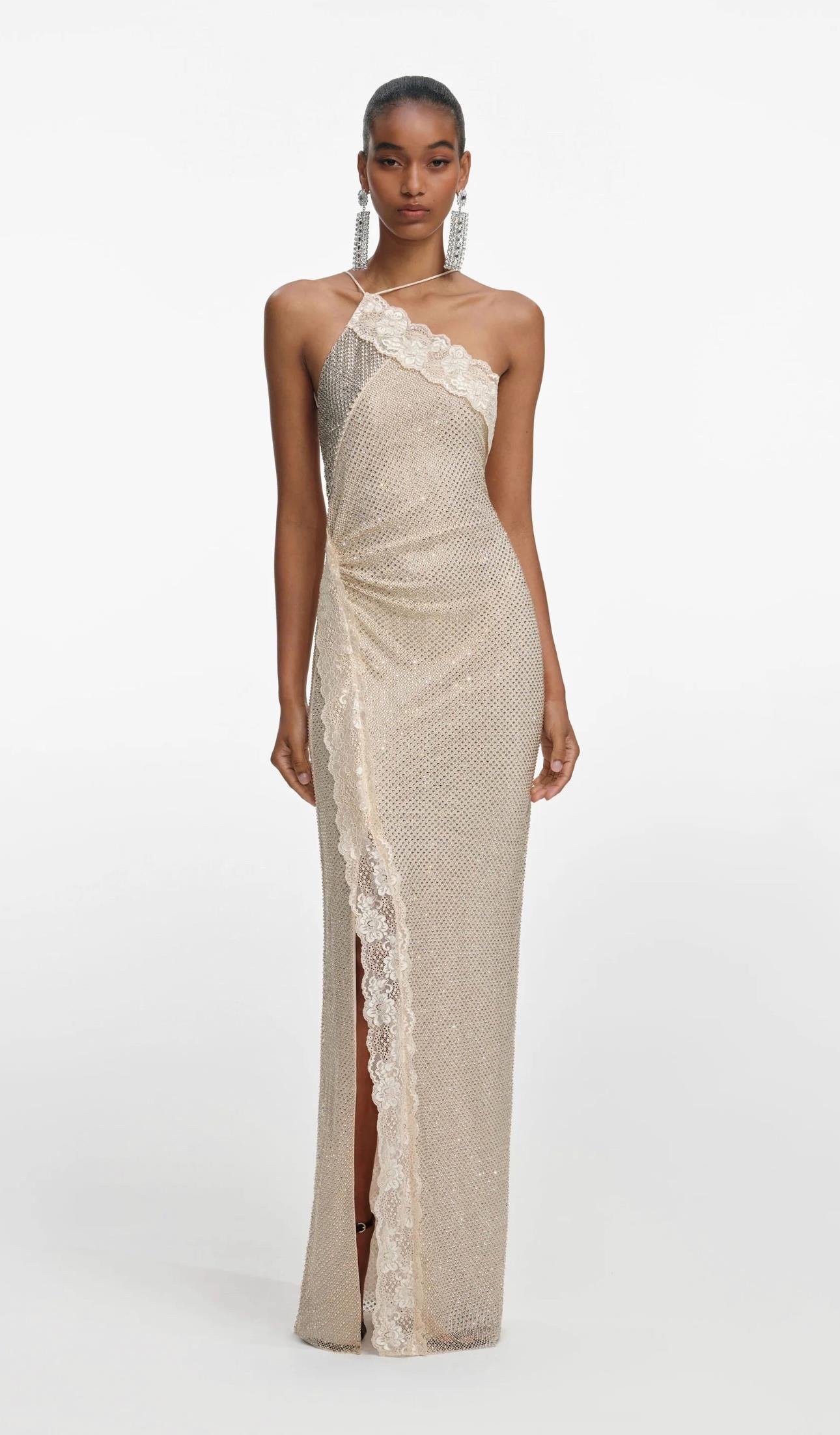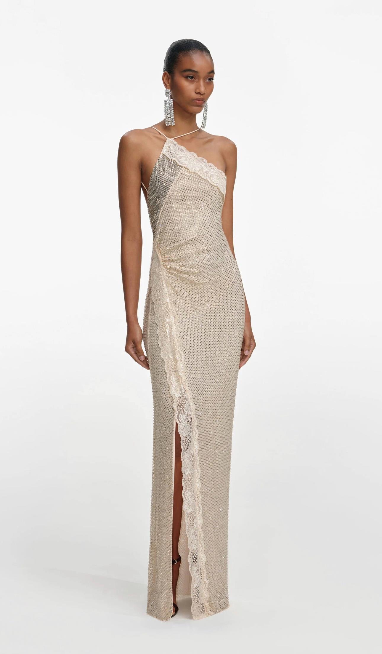 Kristal Taşlı Dantel Detaylı Yırtmaçlı Premium Maksi Elbise (DA0002963)
