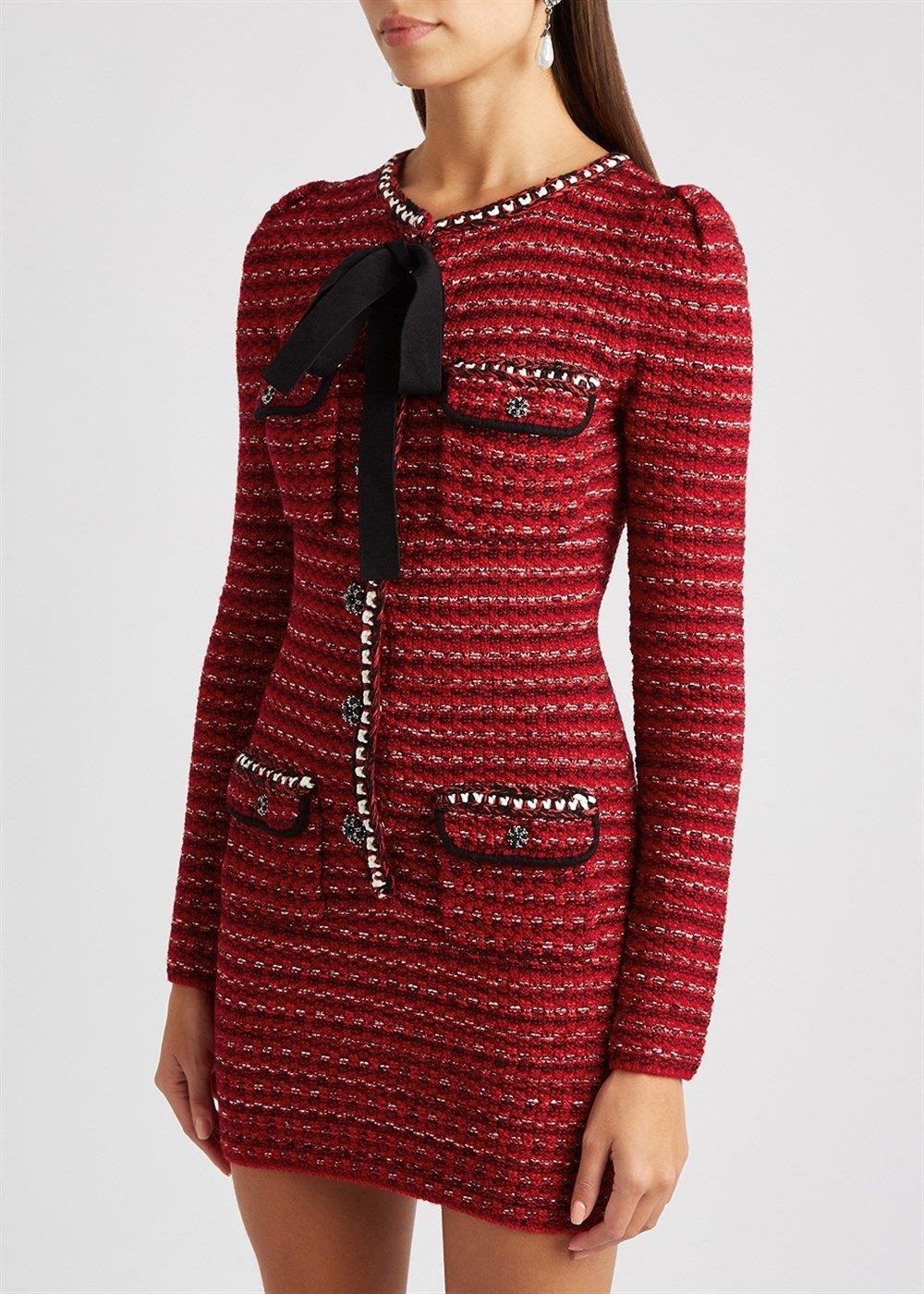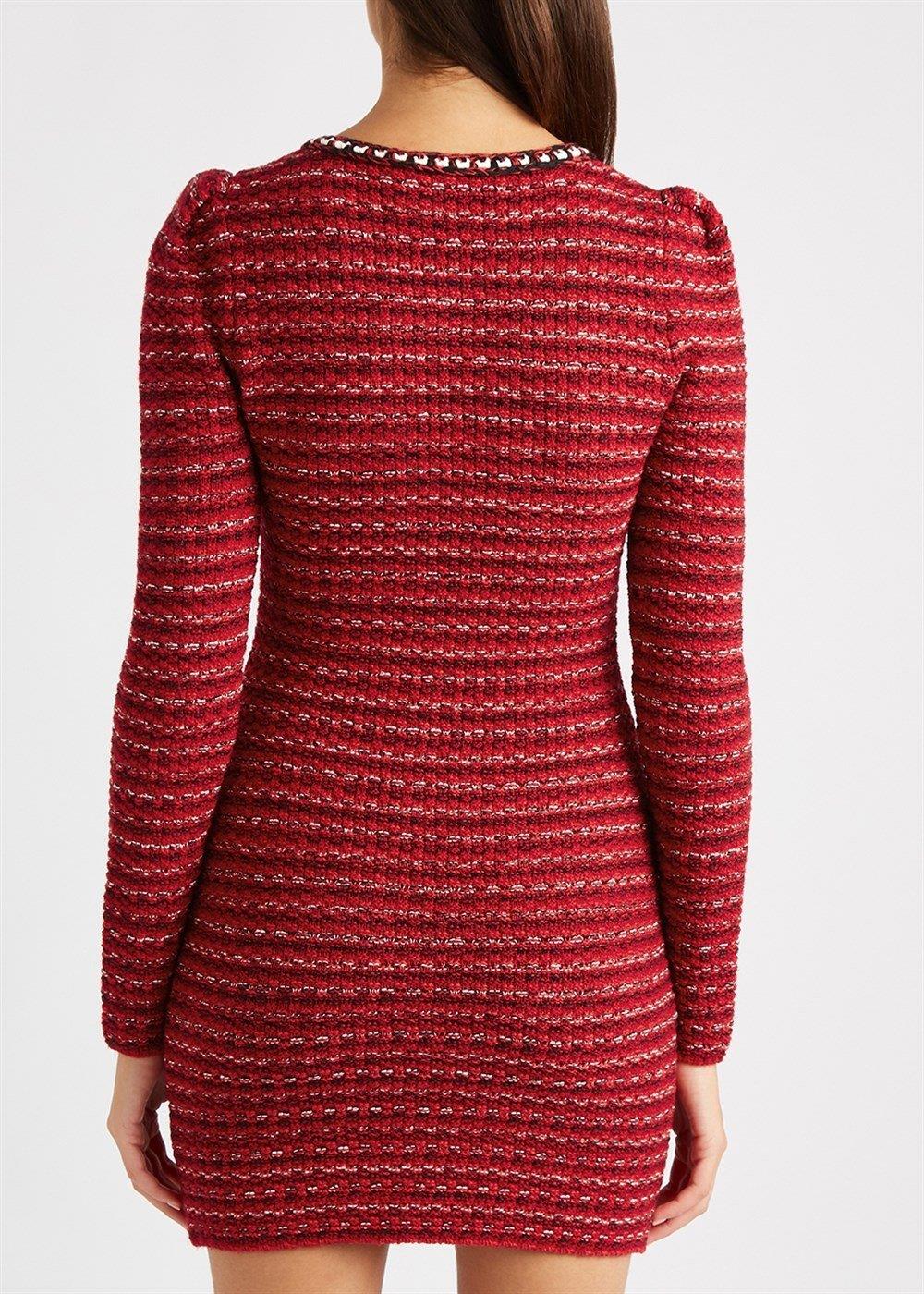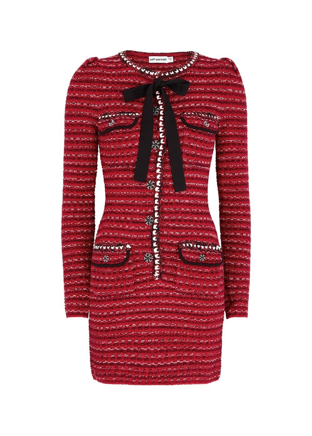 Kurdele Detaylı Cepli Kırmızı Triko Mini Elbise (DA0003026)