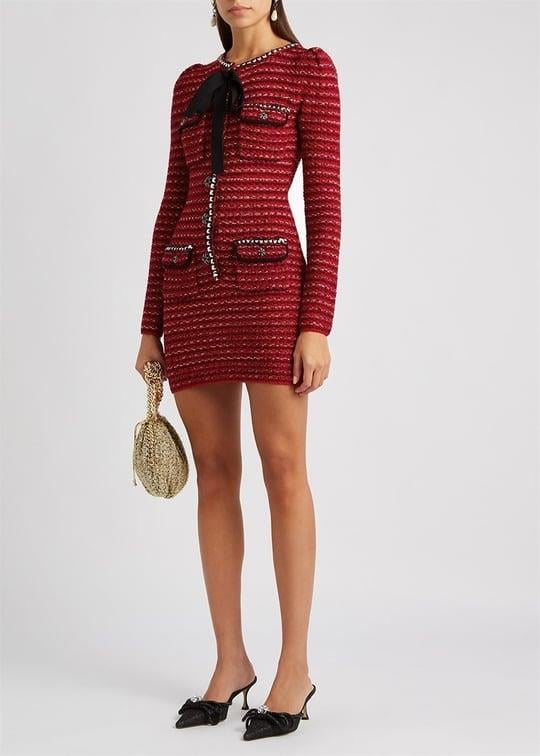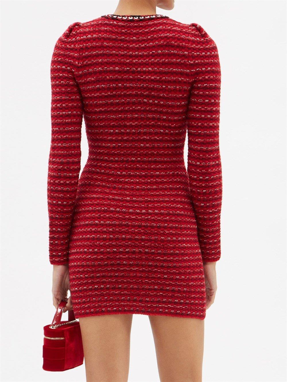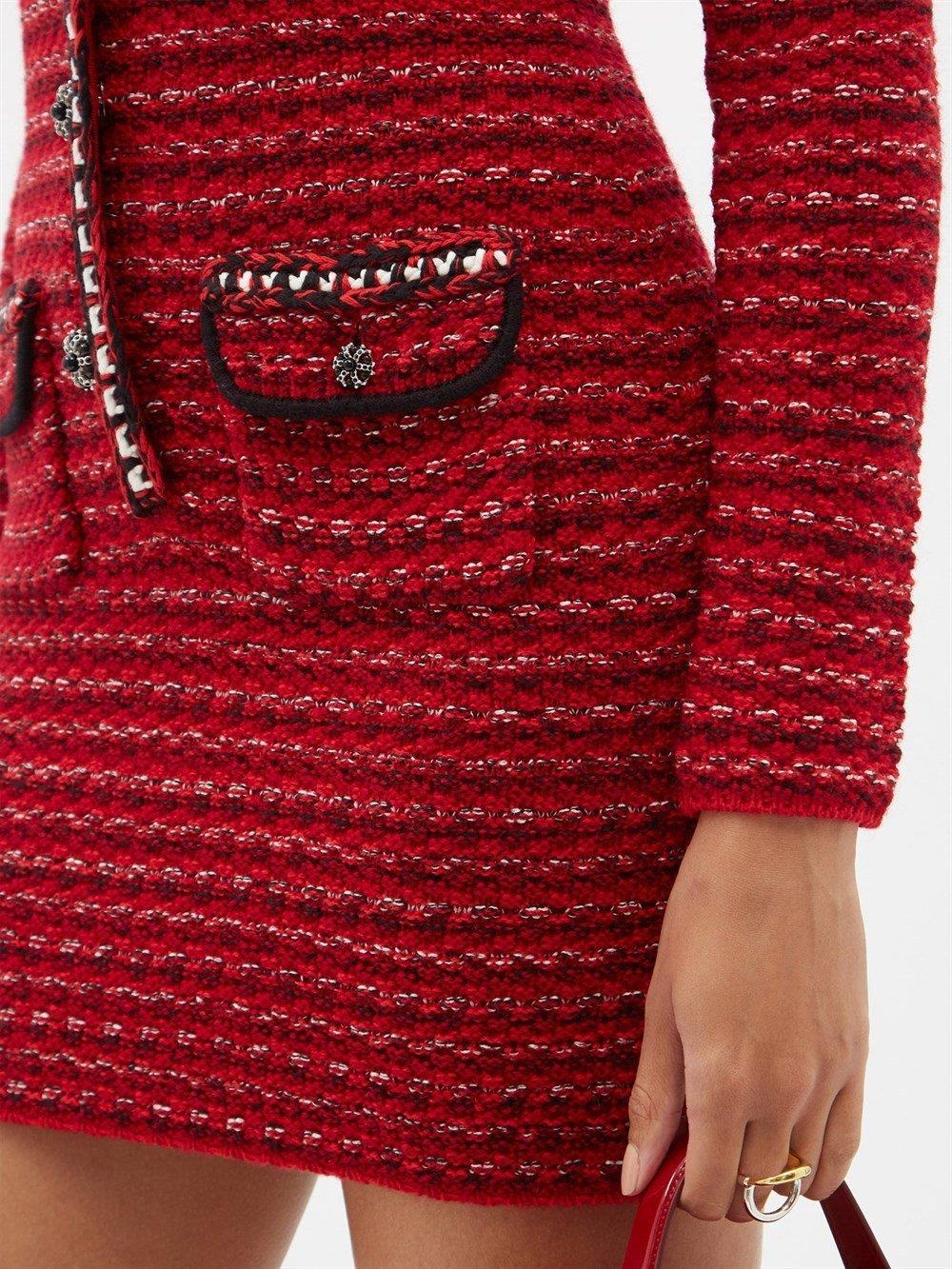 Kurdele Detaylı Cepli Kırmızı Triko Mini Elbise (DA0003026)