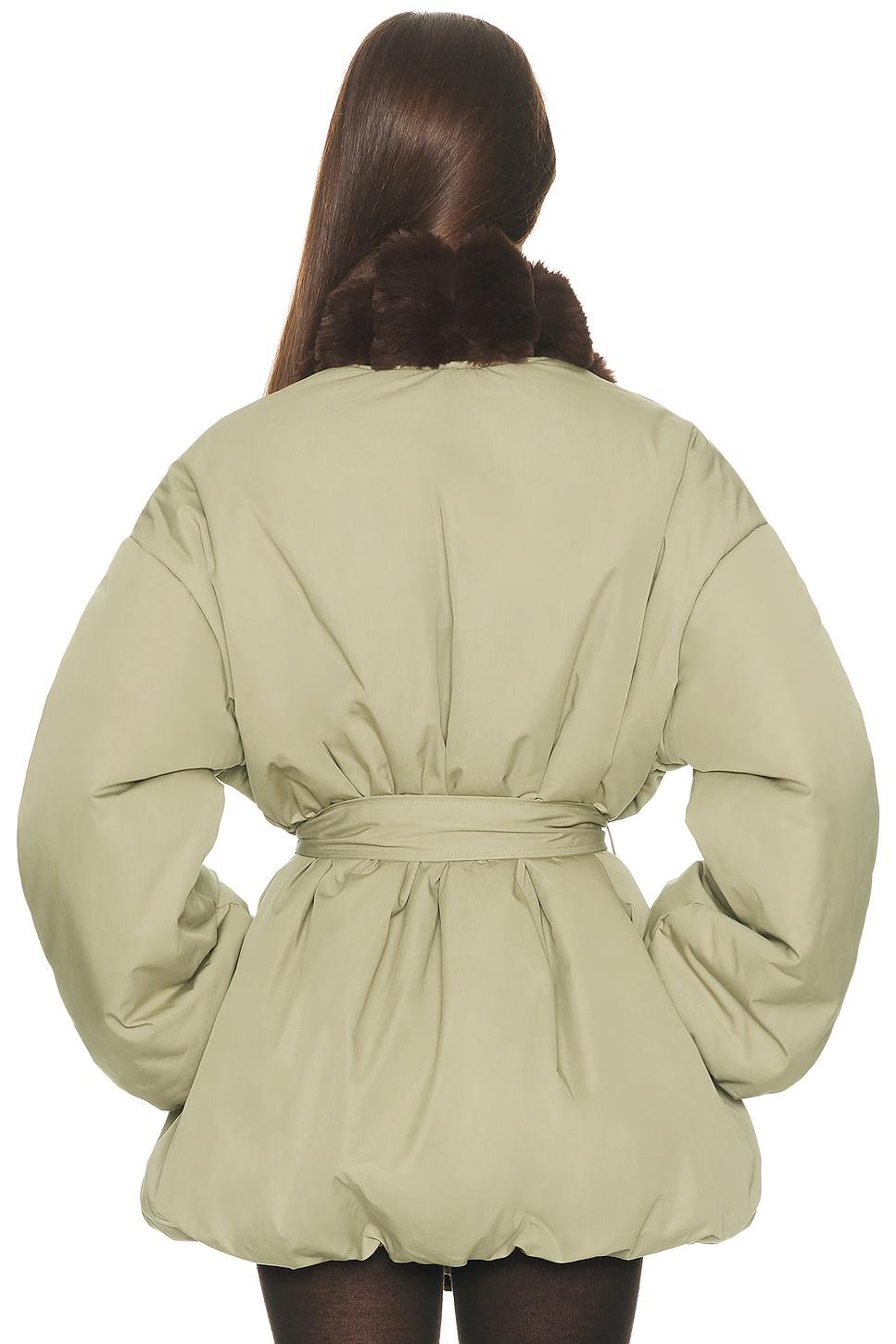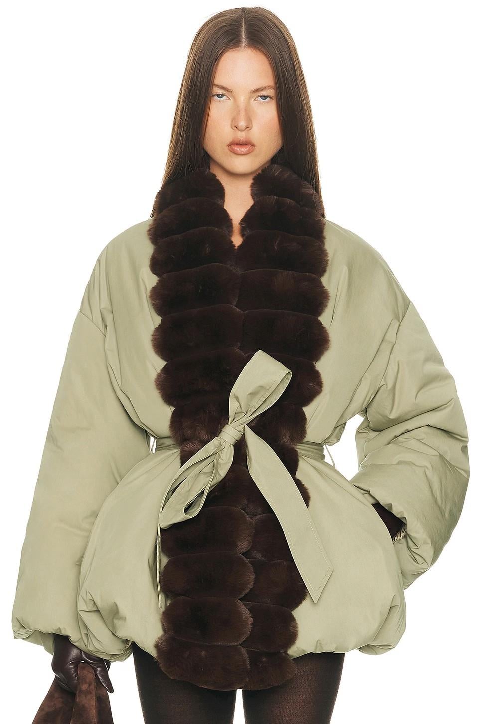 Kürklü Kuşaklı Premium Haki Puffer Ceket (DA0003200)