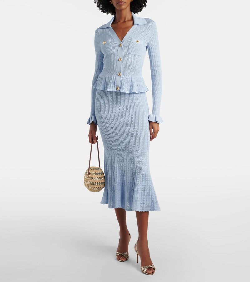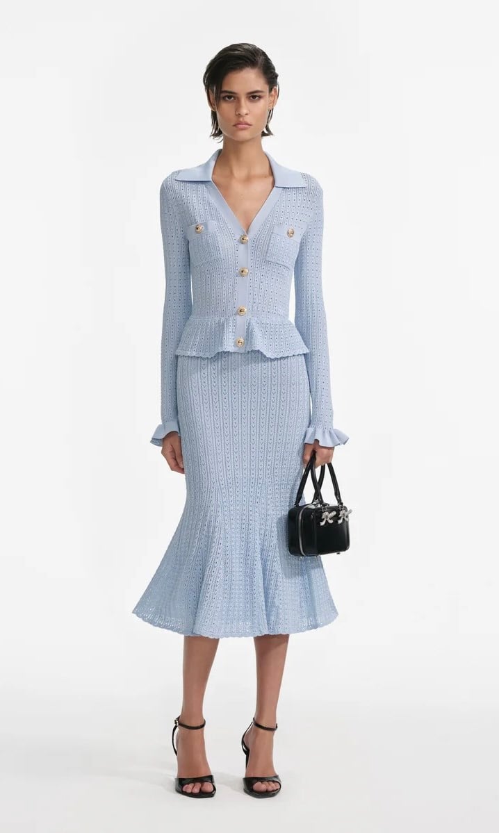 Peplum Detaylı Triko Midi Boy Mavi Elbise (DA0003532)