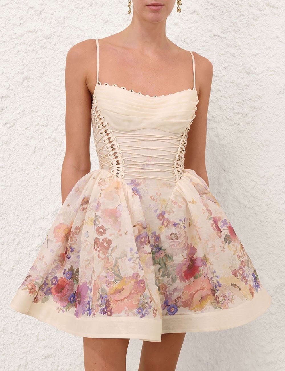 İp Askılı Beli İp Detaylı Desenli Mini Premium Elbise (DA0003546)