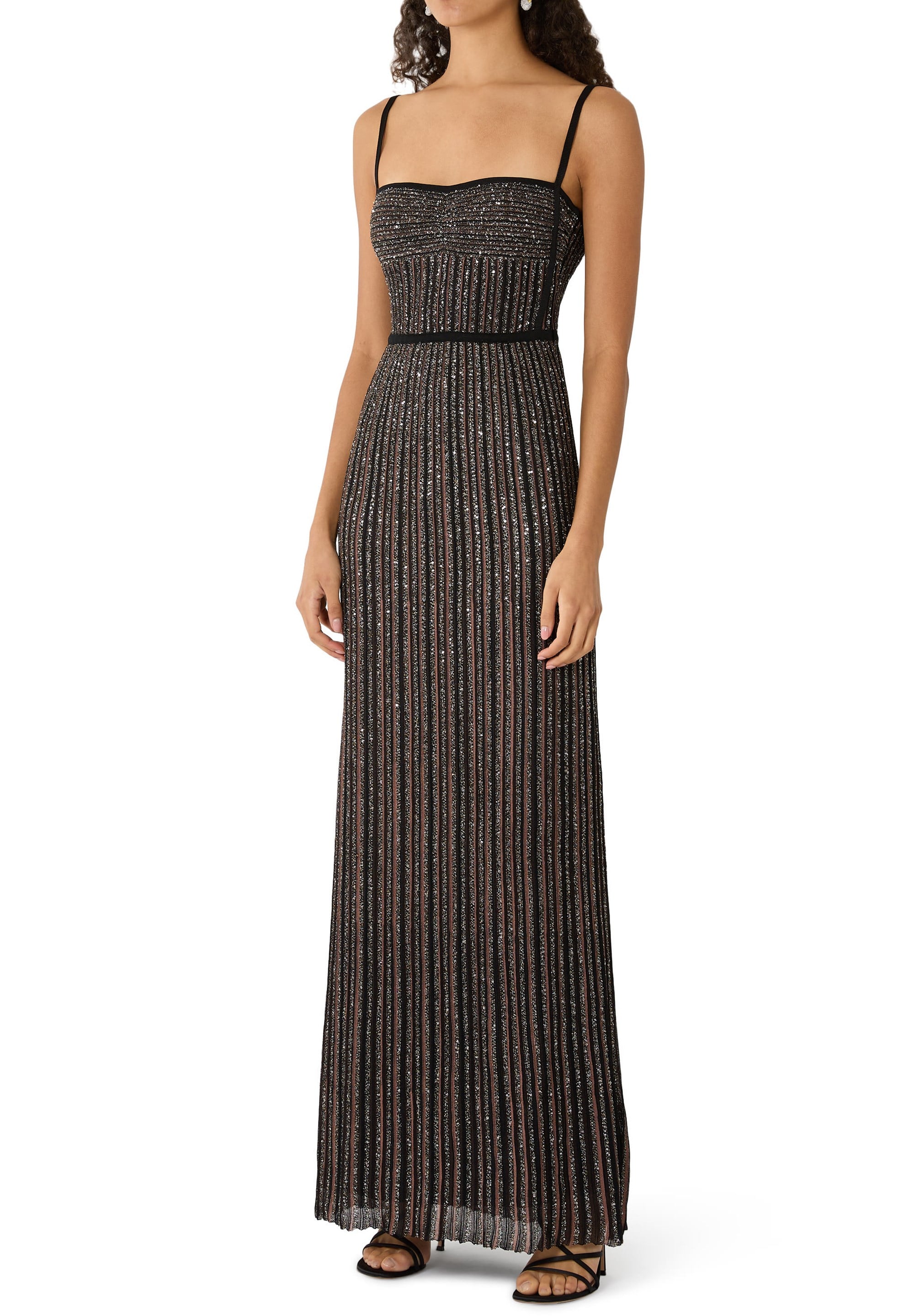 İp Askılı Çizgili Işıltılı Simli Premium Elbise (DA0003585)