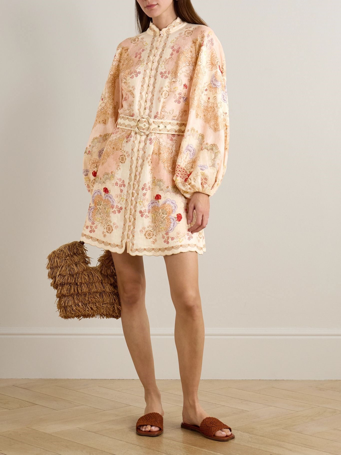 Kemerli Desenli Premium Mini Elbise (DA0003520)