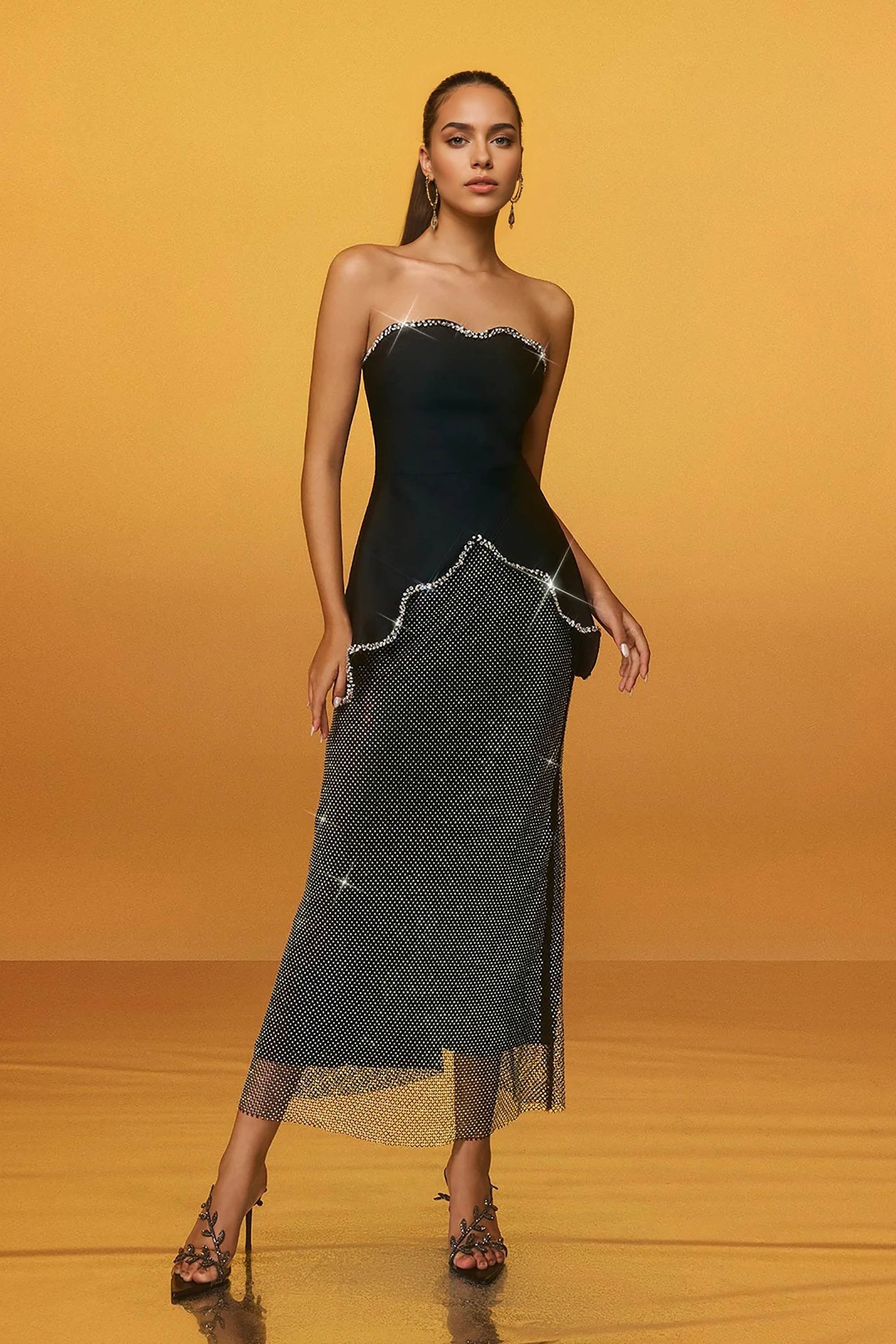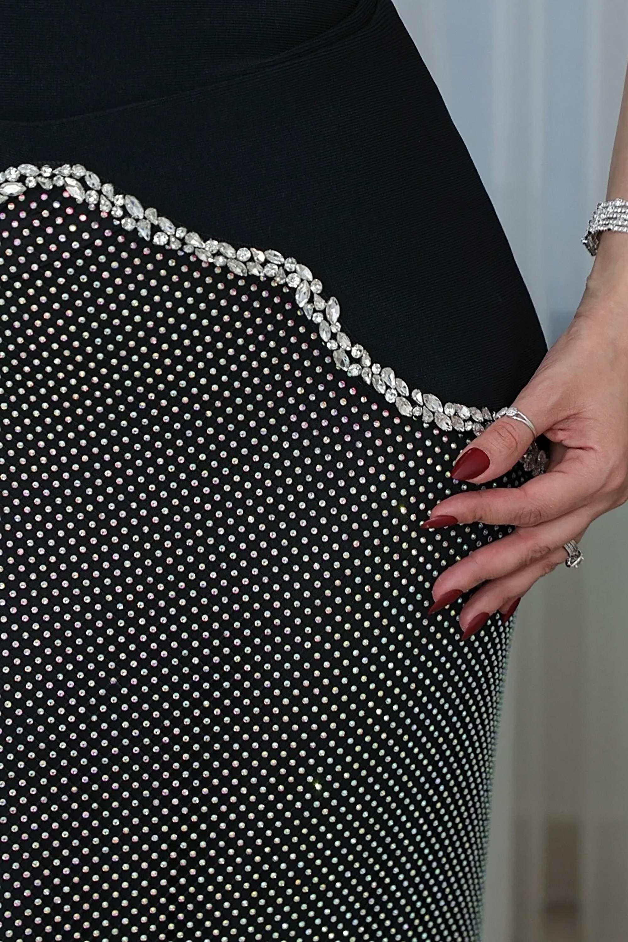 Kristal Taş İşlemeli Bluz ve Kristal Taşlı Tasarım Etek Takım (DA0003619)