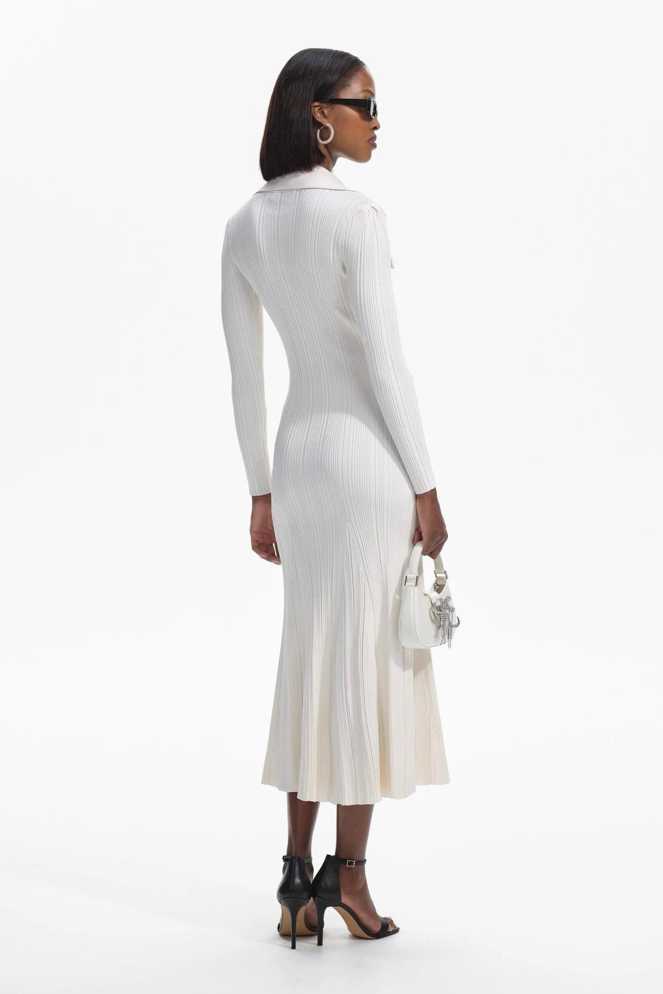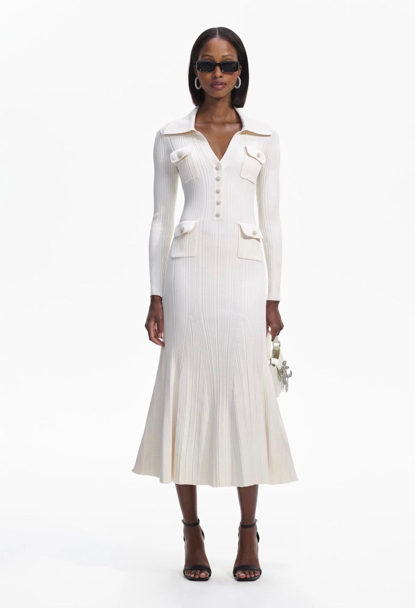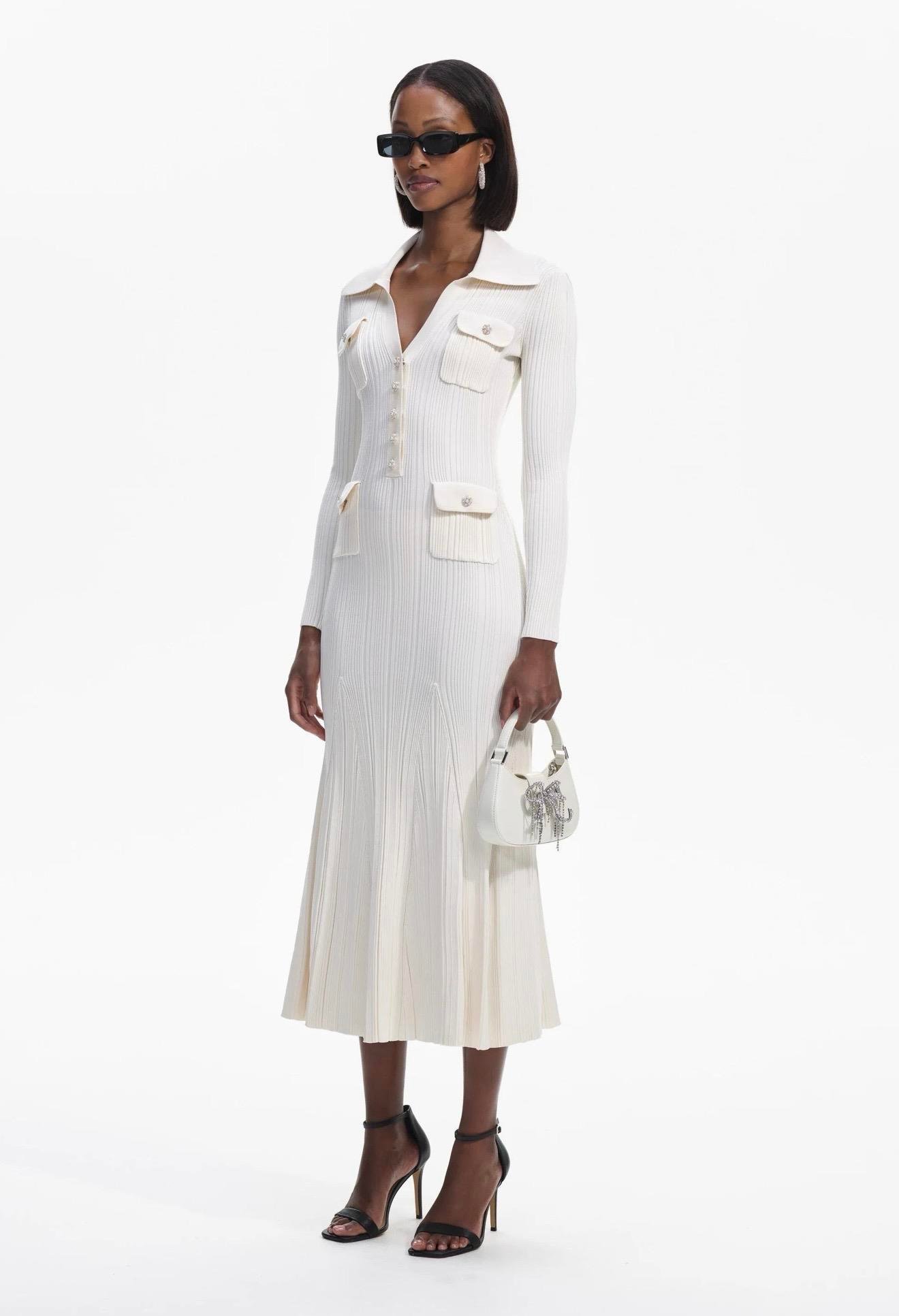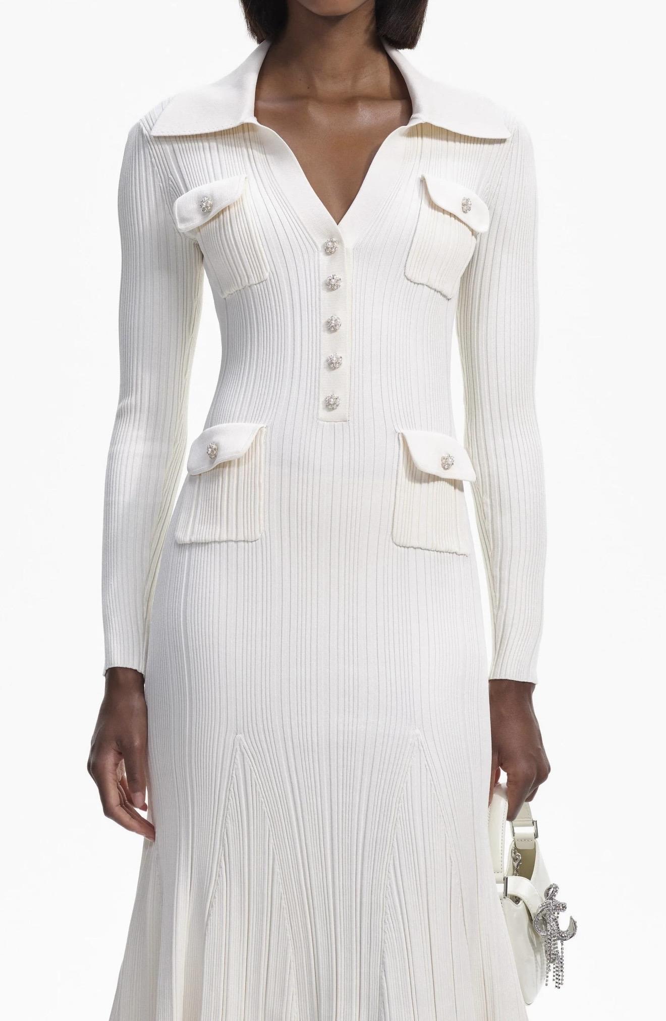 V Yaka Düğme Detaylı Cepli Tasarım Midi Triko Elbise (DA0003025)